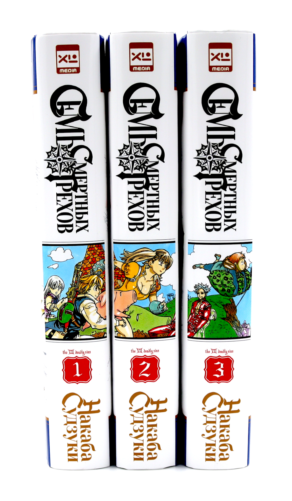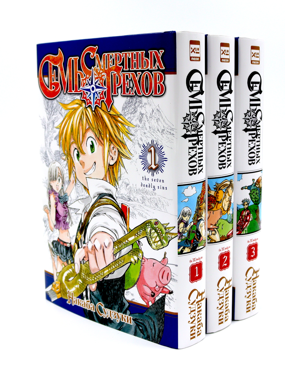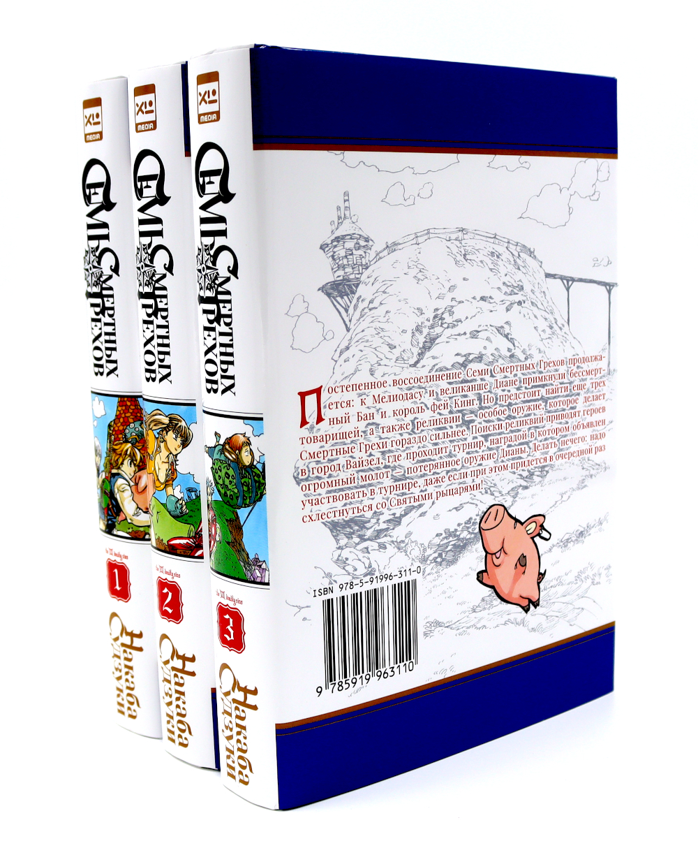 Комплект состоит из трех первых томов манги Накабы Судзуки «Семь смертных грехов». В первом томе для королевства Лионесс настали черные дни: власть захватила элита королевских войск, Святые Рыцари, которые заточили в тюрьму королевскую семью и творят в стране произвол. Принцессе Элизабет удается сбежать, и она решает искать помощи у легендарных рыцарей-мятежников, которые известны в народе как Семь Смертных Грехов. По счастливой случайности девушка забредает в весьма странный кабак, хозяином которого оказывается как раз один из тех, кого она ищет: Смертный Грех Гнева, Мелиодас. Он соглашается помочь Элизабет и отправляется с ней на поиски бывших товарищей... Во втором томе Мелиодас, Диана и принцесса Элизабет нашли еще одного из Смертных Грехов - Бана, который также известен как Грех Лисьей Жадности. Но тот томится в заключении в неприступной тюрьме Баста, тому же герои по дороге попадают в ловушку Святых рыцарей. Смогут ли Мелиодас и Диана воссоединиться со старым товарищем и отыскать остальные Смертные Грехи? И главное - все ли будут рады воссоединению? В третьем томе постепенное воссоединение Семи Смертных Грехов продолжается: к Мелиодасу и великанше Диане примкнули бессмертный Бан и король фей Кинг. Но предстоит найти еще трех товарищей, а также реликвии - особое оружие, которое делает Смертные Грехи гораздо сильнее. Поиски реликвий приводят героев в город Вайзел, где проходит турнир, наградой в котором объявлен огромный молот - потерянное оружие Дианы. Делать нечего: надо участвовать в турнире, даже если при этом придется в очередной раз схлестнуться со Святыми рыцарями!| Издательство | ЭксЭл Медиа |