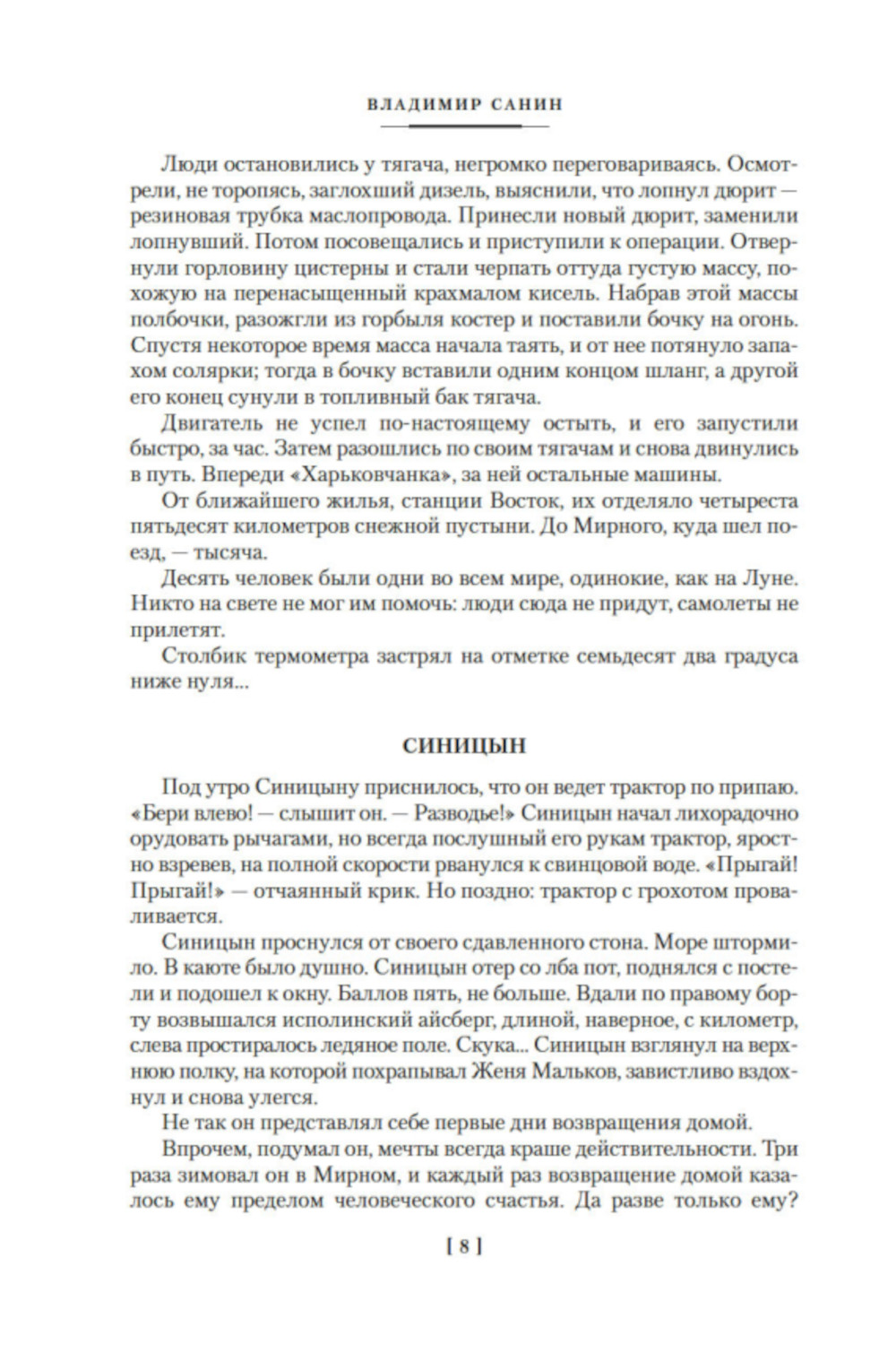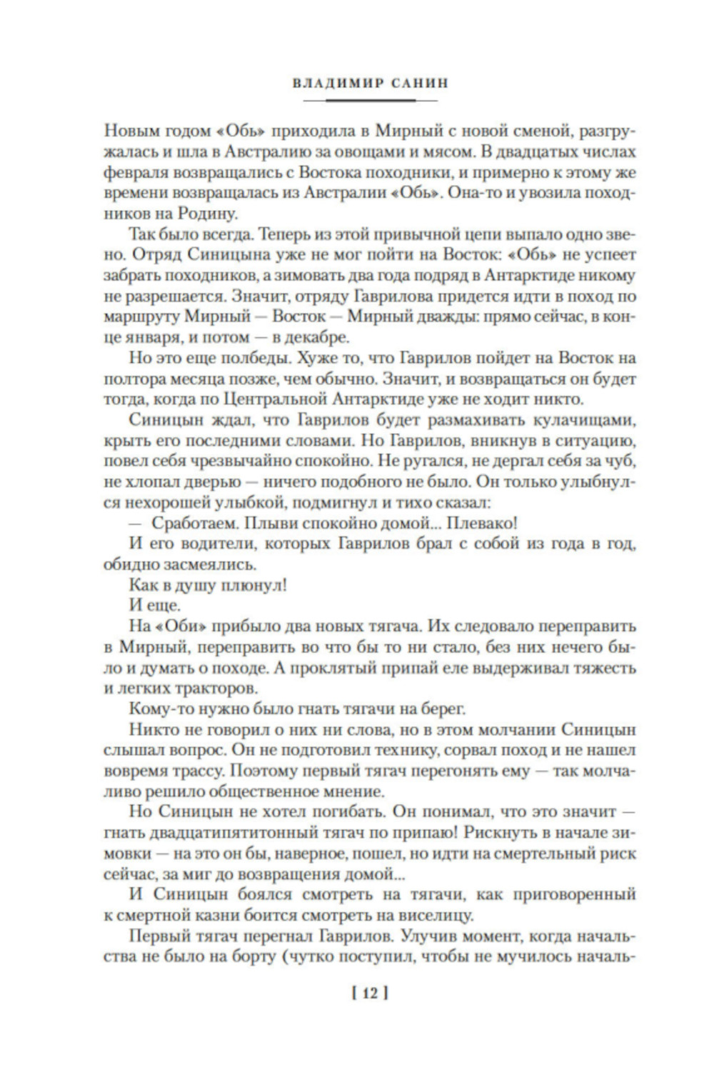Владимир Маркович Санин (1929-1989) писал о людях, выбравших в жизни трудную и опасную дорогу, - о полярниках, пожарных, путешественниках. И сам он относился к той же беспокойной человеческой породе: совсем юным Санин успел принять участие в Великой Отечественной, после войны закончил экономический факультет МГУ, поработал в газете, стал писателем, не раз побывал за полярным кругом, в Арктике и Антарктике. Сюжеты его произведений зачастую основаны на реальных событиях, развиваются в нетривиальных обстоятельствах и замкнутых сообществах (таких, например, как экипаж судна или лавинная станция). В книгу включен знаменитый цикл "Зов полярных широт", состоящий из пяти повестей, и роман "Белое проклятие", экранизированный в 1987 году. Проза Владимира Санина вдохновляла кинематографистов не раз: стоит упомянуть здесь картину "Семьдесят два градуса ниже нуля" (1976) и трехсерийный телефильм "Антарктическая повесть" (1979).| Издательство | Азбука |