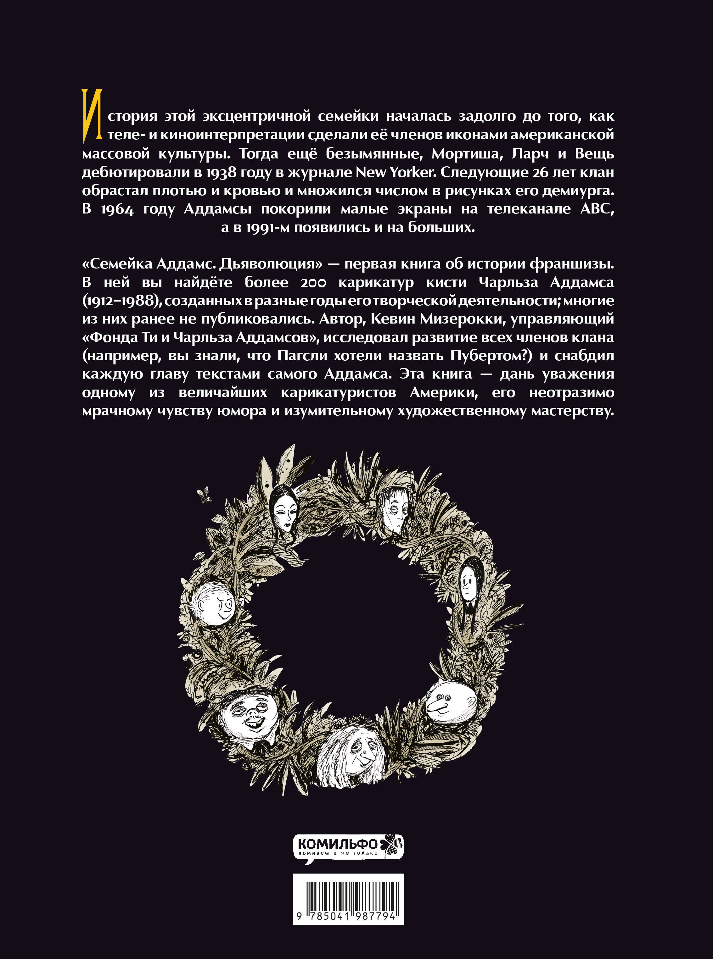 История этой эксцентричной семейки началась задолго до того, как теле- и киноинтерпретации сделали её членов иконами американской массовой культуры. Тогда ещë безымянные, Мортиша, Ларч и Вещь дебютировали в 1938 году в журнале New Yorker. Следующие 26 лет клан обрастал плотью и кровью и множился числом в рисунках его демиурга. В 1964 году Аддамсы покорили малые экраны на телеканале ABC, а в 1991-м появились и на больших. «Семейка Аддамс. Дьяволюция» - первая книга об истории франшизы. В ней вы найдёте более 200 карикатур кисти Чарльза Аддамса (1912-1988), созданных в разные годы его творческой деятельности; многие из них ранее не публиковались. Автор, Кевин Мизерокки, управляющий «Фонда Ти и Чарльза Аддамсов», исследовал развитие всех членов клана (например, вы знали, что Пагсли хотели назвать Пубертом?) и снабдил каждую главу текстами самого Аддамса. Эта книга - дань уважения одному из величайших карикатуристов Америки, его неотразимо мрачному чувству юмора и изумительному художественному мастерству.| Издательство | ООО "Издательство "Эксмо" |