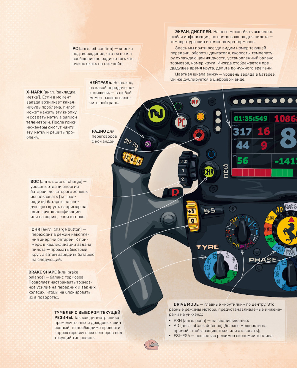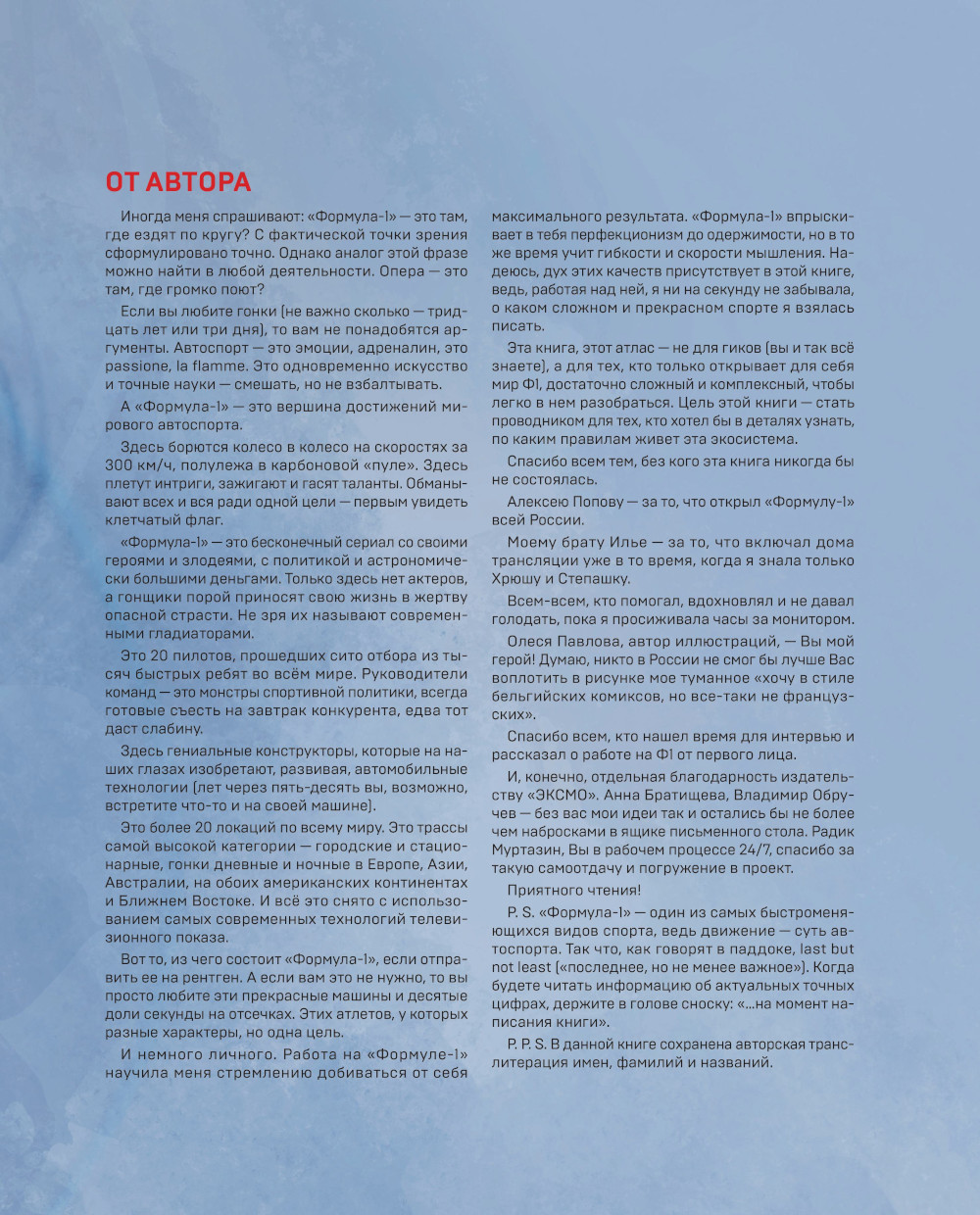 «Формула-1» - это отдельный микрокосмос, со своими законами и правилами жизни, богатой историей, языком, даже со своей моралью. И новичкам бывает непросто подключиться к этому миру. Я всегда рада рассказывать всем, кто еще «не в клубе», насколько «Формула-1» уникальна и увлекательна - нужно лишь разобраться, что вообще здесь происходит! :) А еще это чрезвычайно серьезный спорт. Поэтому я решила, что книга должна быть проиллюстрирована в легком стиле комиксов. К тому же, в наш цифровой век «живые» рисунки талантливой художницы- настоящая роскошь. Аналогов этой книги я не встречала ни на одной «гоночной» полке - ни в Европе, ни в Австралии. Так что предлагаю вашему вниманию легкую энциклопедию самого сложного технического вида спорта. Enjoy!| Издательство | Эксмо |