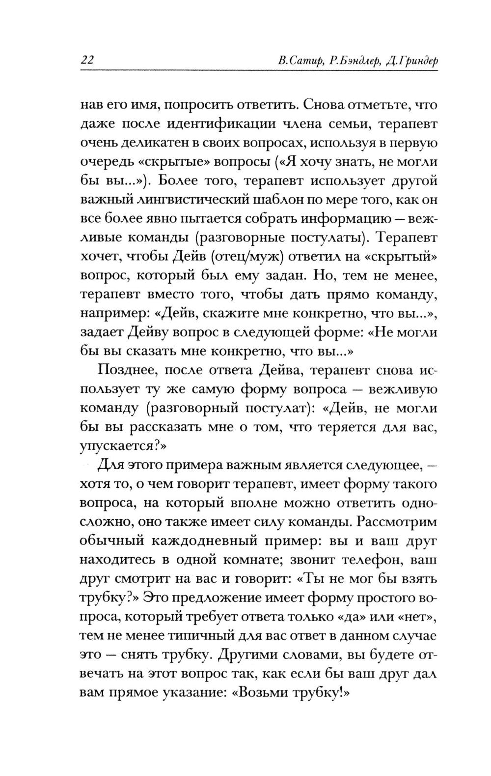 | Автор/составитель | Бэндлер Ричард;Гриндер Джон;Сатир Вирджиния |