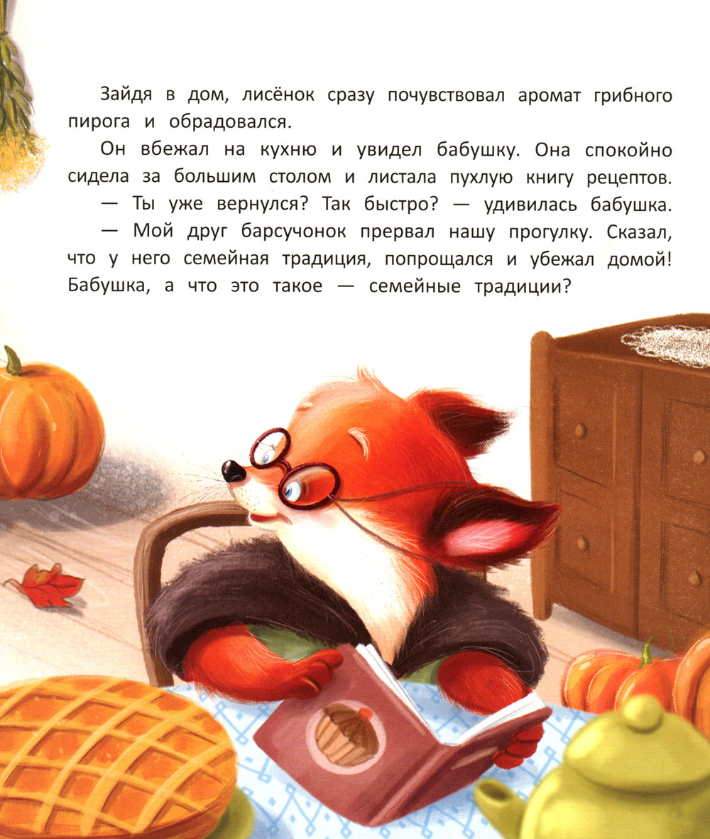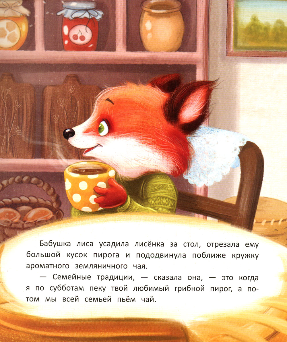 Взволнованный лисёнок прибегает домой. Он узнал, что у друга есть семейная традиция, и очень хочет понять, что же это такое? В поисках ответа на этот вопрос лисёнок обращается к самым близким: маме, папе, бабушке и дедушке - и каждый из них даёт ему свой ответ. Однако самое важное открытие принадлежит самому лисёнку.
