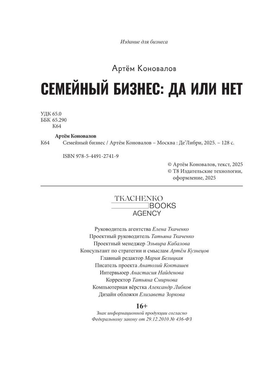 Почему одни семьи успешно передают бизнес из поколения в поколение, а другие начинают судиться и делить компанию? Как передать своё дело наследникам так, чтобы сохранить любовь и доверие близких? Рано или поздно эти вопросы встанут перед каждым владельцем семейной компании. Артем Коновалов хорошо знает трудности бизнес-династий. В книге собраны личные истории и рассказы других предпринимателей - опыт успехов и ошибок.| Издательство | Рипол Классик |