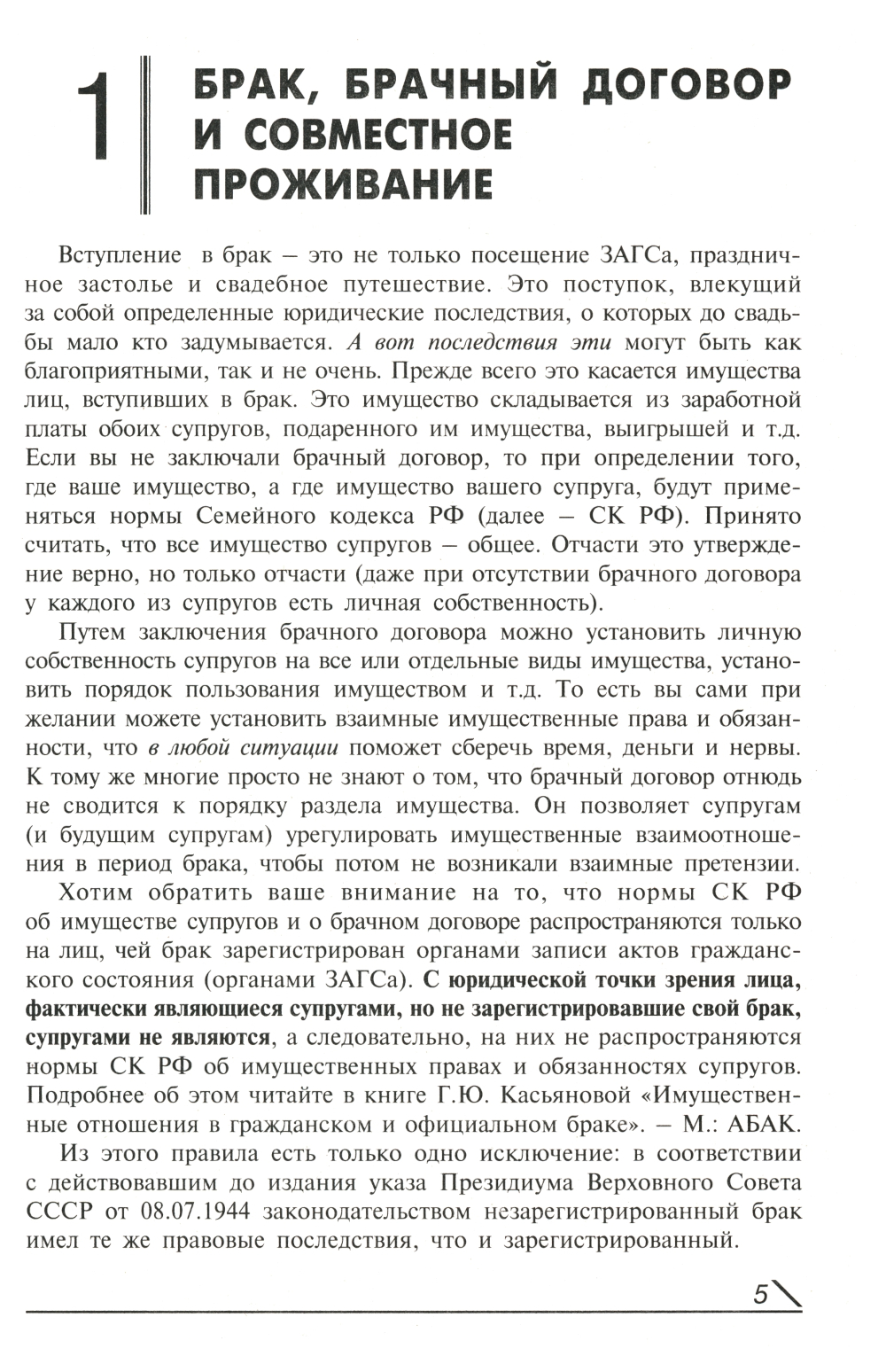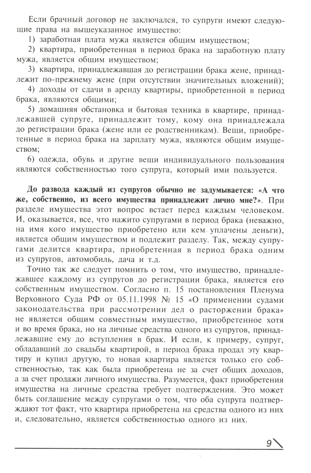 Прочитав эту книгу, вы узнаете, в чьей собственности находится имущество (квартира, машина, украшения и т.д.), принадлежавшее каждому из супругов до свадьбы; какое имущество находится в вашей личной собственности (и им вы можете распоряжаться самостоятельно); как можно продать, подарить, сдать в аренду общую вещь; какое имущество перейдет к вам в случае развода, смерти супруга или родителей; когда и зачем заключается брачный договор; кто имеет право на получение алиментов и как его реализовать; и многое, многое другое.