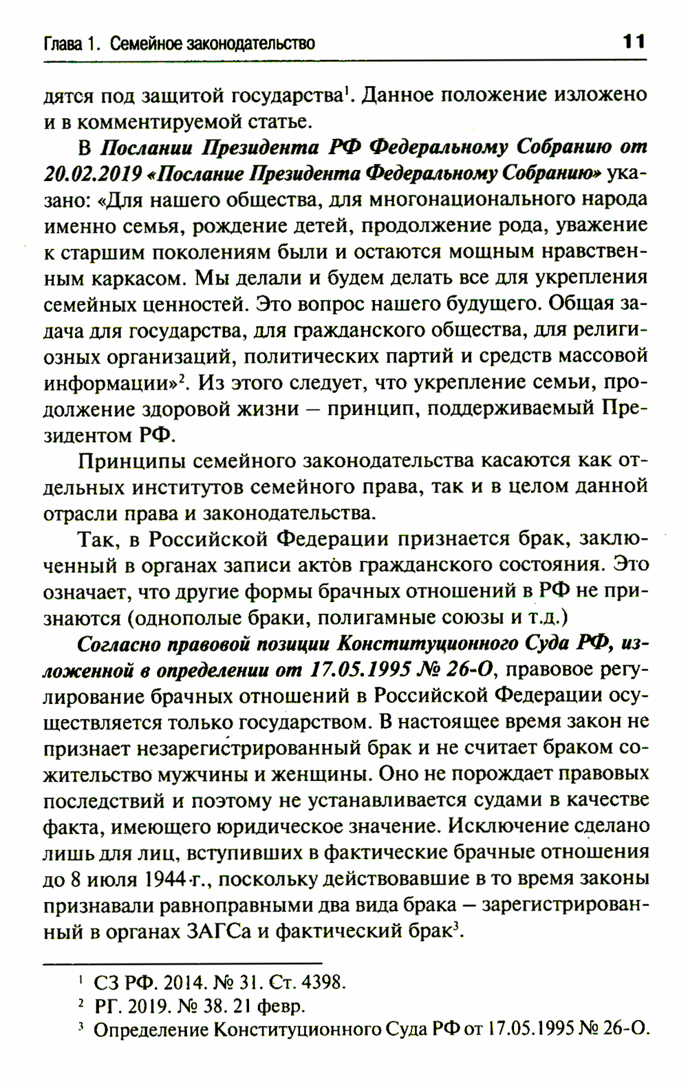 Работа представляет собой написанный в соавторстве постатейный научно-практический комментарий к Семейному кодексу РФ. Авторы обращают внимание на трудности, возникающие у судов при применении норм Семейного кодекса РФ. Сделаны некоторые предложения по правильному применению семейного законодательства, в том числе правовой квалификации семейных отношений. При написании комментария учитывались решения Европейского суда по правам человека, Конституционного Суда РФ, Верховного Суда РФ, Московского городского суда, а также доктринальные положения по вопросам семейного права. Законодательство приведено по состоянию на 1 октября 2020 г. Работа рассчитана на судей, сотрудников органов опеки и попечительства, правоохранительных органов, государственных и муниципальных гражданских служащих и всех граждан, интересующихся вопросами применения семейного законодательства.| Издательство | Проспект |