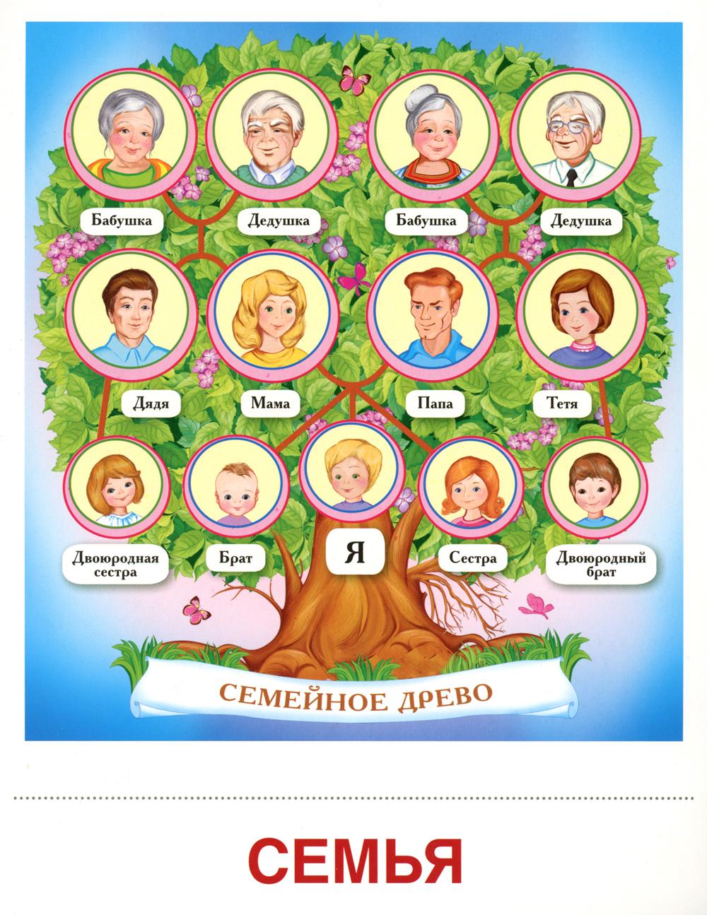 Семья. 8 демонстрационных картинок с текстом на обороте