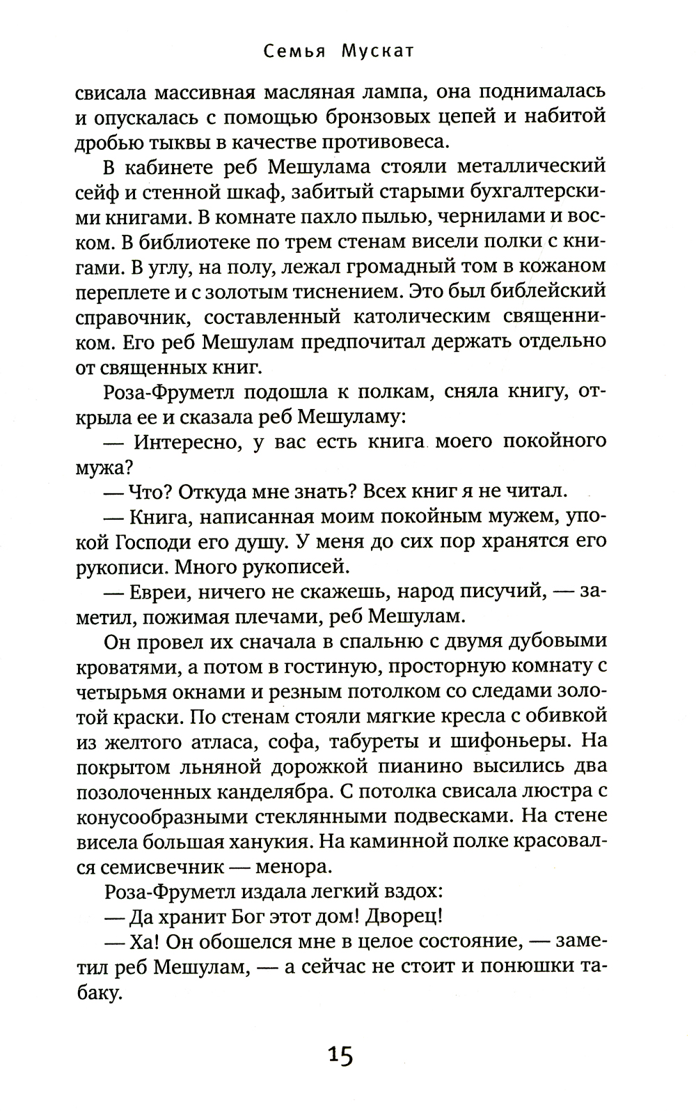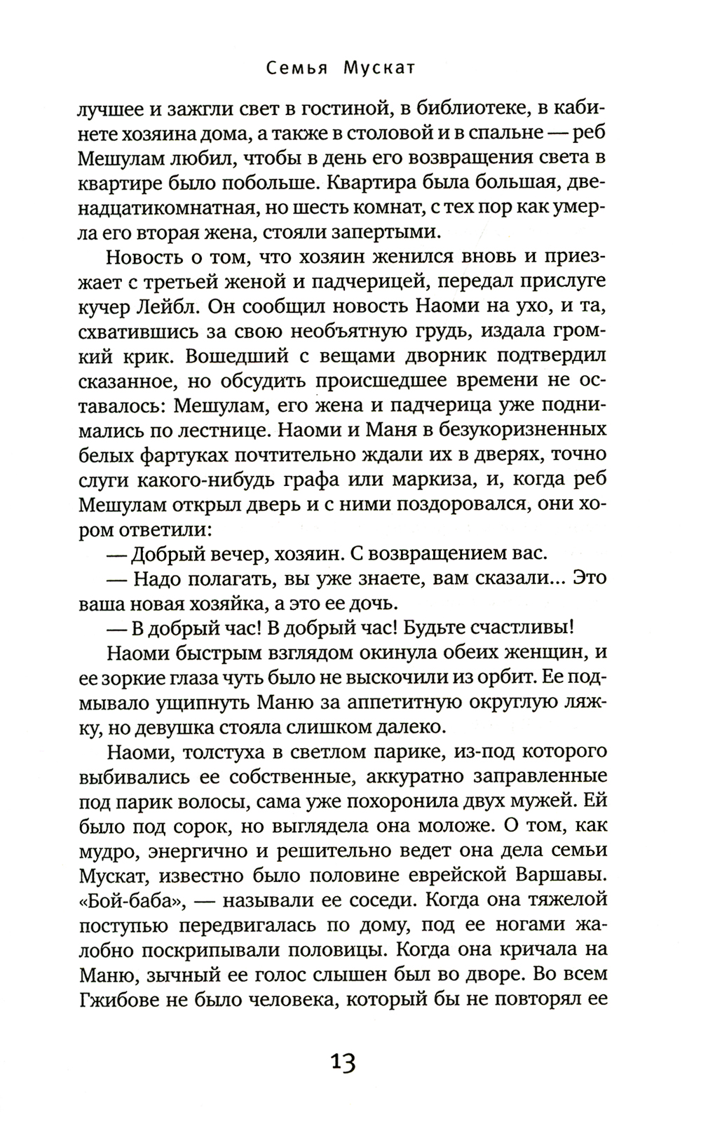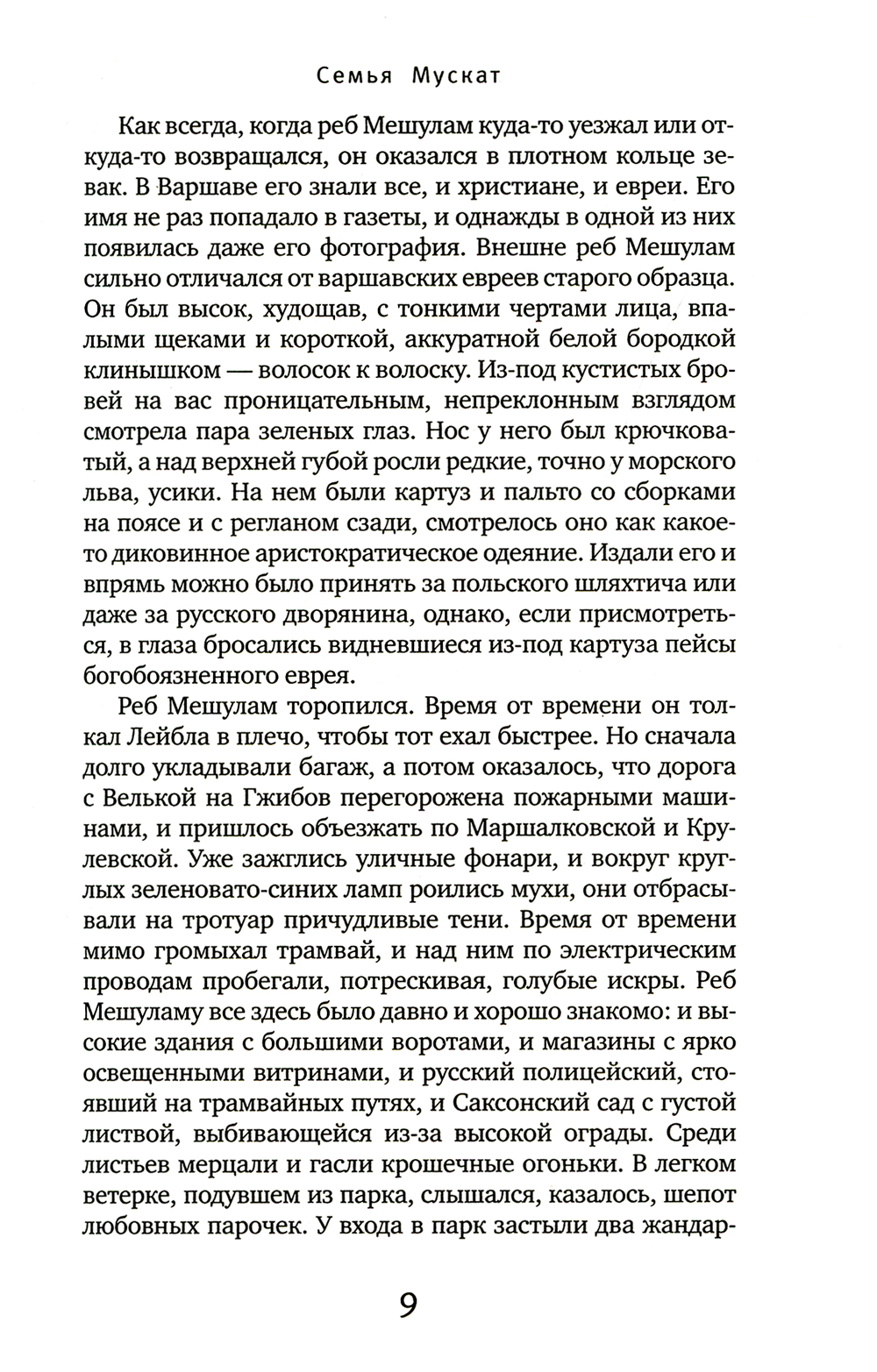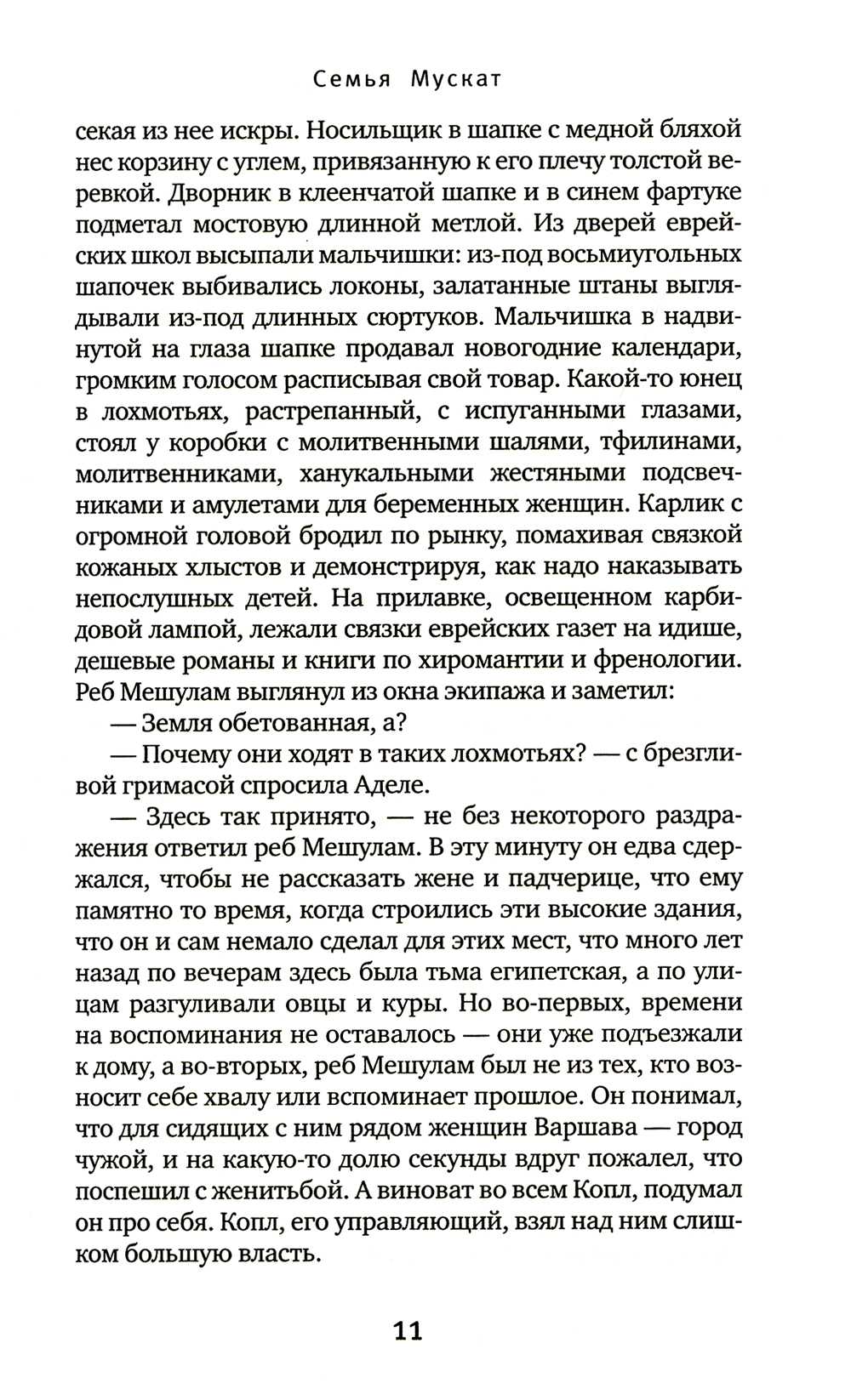 Выдающийся писатель, лауреат Нобелевской премии Исаак Башевис Зингер посвятил свой роман «Семья Мускат» (1950) памяти своего старшего брата. Посвящение подчеркивает преемственность творческой эстафеты, - ведь именно Исроэл Йошуа Зингер своим знаменитым произведением «Братья Ашкенази» заложил основы еврейского семейного романа. В «Семье Мускат» изображена жизнь варшавских евреев на протяжении нескольких десятилетий - мы застаем многочисленное семейство в переломный момент, когда под влиянием обстоятельств начинается меняться отлаженное веками существование польских евреев, и прослеживаем его жизнь на протяжении десятилетий. Роман существует в двух версиях - идишской и английской, перевод которой мы и предлагаем читателю.| Издательство | Текст |