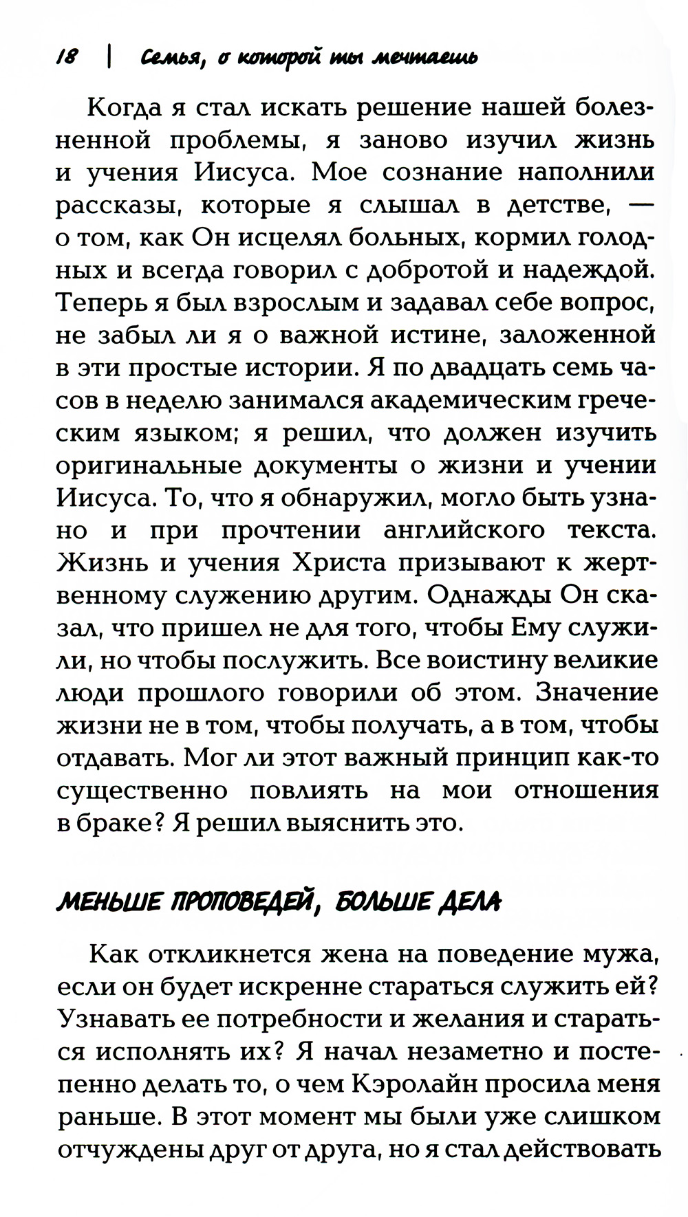 Автор книги занимается семейными проблемами и консультирует по ним более тридцати пяти лет. На протяжении этого времени тысячи мужчин и женщин говорили ему о своей мечте иметь хорошую семью, и выявилось, что у многих современных людей нет ясного понимания, что такое здоровая семья. Именно потому он и решил написать эту книгу. Г. Чепмен утверждает, что «надежда народа на светлое будущее заключается не в политике, а в мужчинах, которые станут любящими главами своих семей и установят мир со своими женами и детьми».
