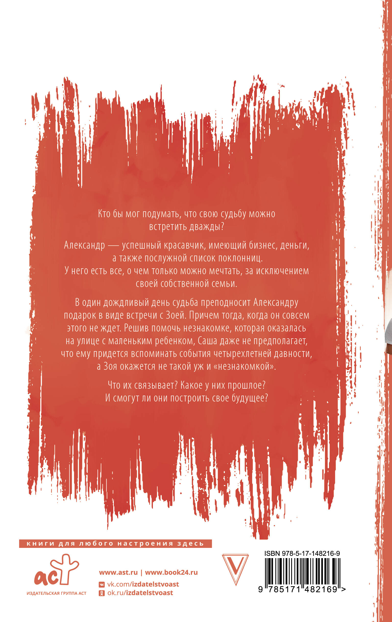 Кто бы мог подумать, что свою судьбу можно встретить дважды? Александр - успешный красавчик, имеющий бизнес, день- ги, а также послужной список поклонниц. У него есть все, о чем только можно мечтать, за исключением своей собствен- ной семьи. В один дождливый день судьба преподносит Александру подарок в виде встречи с Зоей. Причем тогда, когда он совсем этого не ждет. Решив помочь незнакомке, которая оказалось на улице с маленьким ребенком, Саша даже не предполагает, что ему придется вспоминать события четырехлетней давно- сти, а Зоя окажется не такой уж и "незнакомкой". Что их связывает? Какое у них прошлое? И смогут ли они построить свое будущее?| Издательство | АСТ |