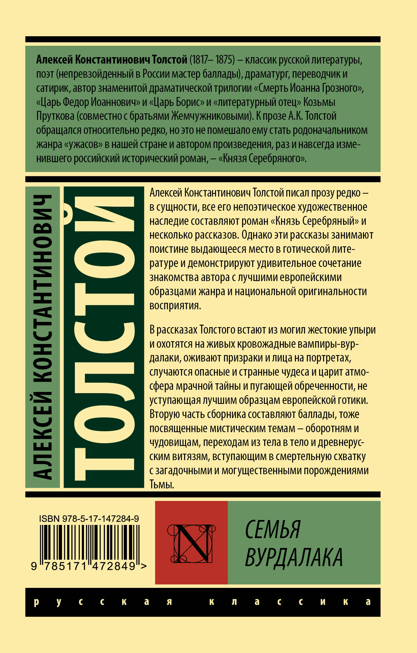 Алексей Константинович Толстой писал прозу редко - в сущности, все его непоэтическое художественное наследие составляют роман "Князь Серебряный" и несколько рассказов. Однако эти рассказы занимают поистине выдающееся место в готической литературе и демонстрируют удивительное сочетание знакомства автора с лучшими европейскими образцами жанра и национальной оригинальности восприятия. В рассказах Толстого встают из могил жестокие упыри и охотятся на живых кровожадные вампиры-вурдалаки, оживают призраки и лица на портретах, случаются опасные и странные чудеса и царит атмосфера мрачной тайны и пугающей обреченности, не уступающая лучшим образцам европейской готики. Вторую часть сборника составляют балады, тоже посвященные мистическим темам - оборотням и чудовищам, переходам из тела в тело и древнерусским витязям, вступающим в смертельную схватку с загадочными порождениями Тьмы.