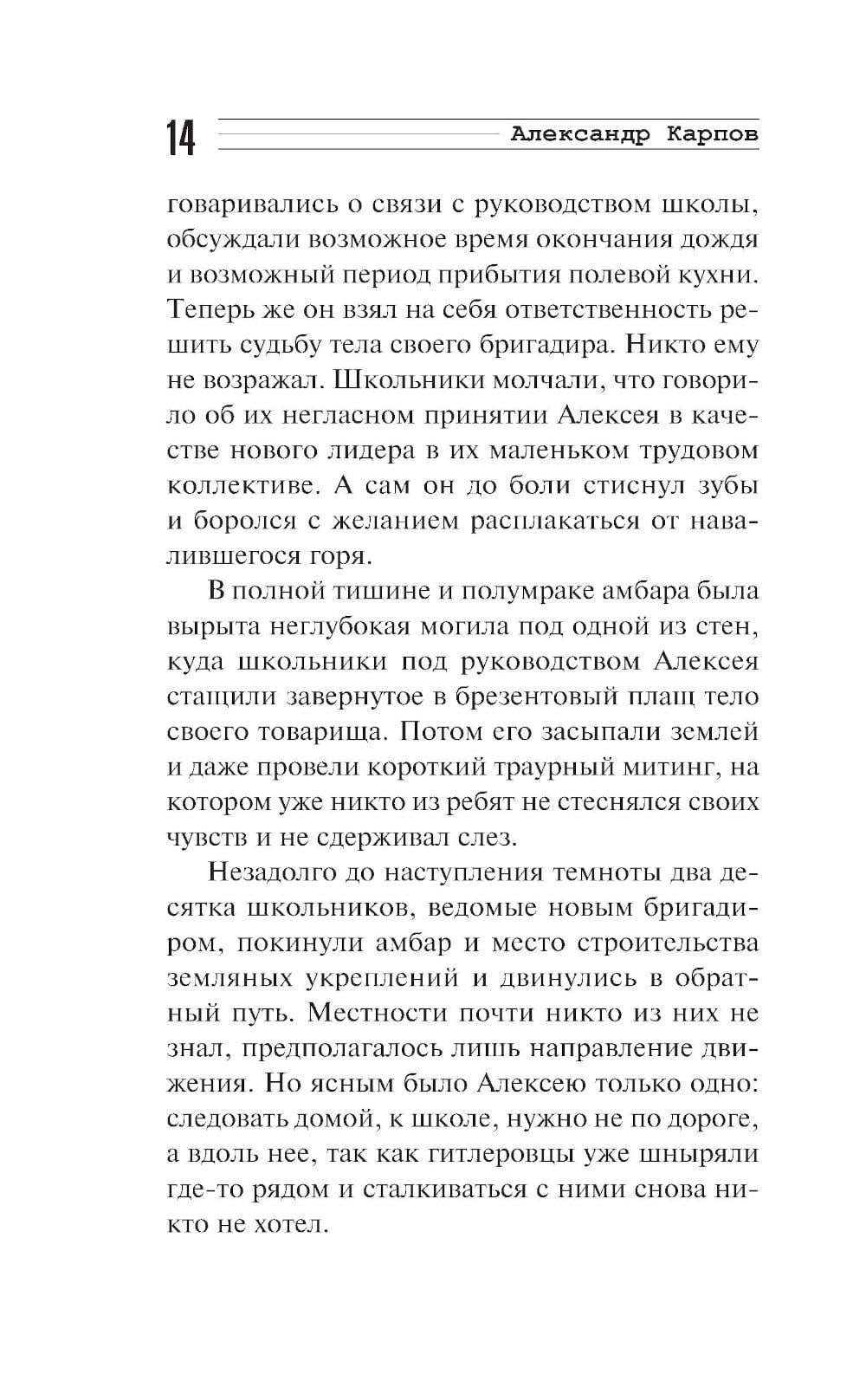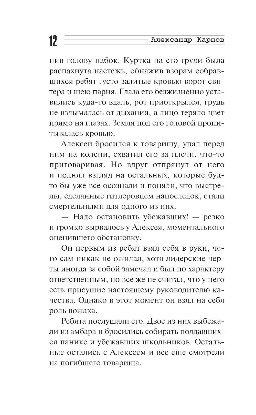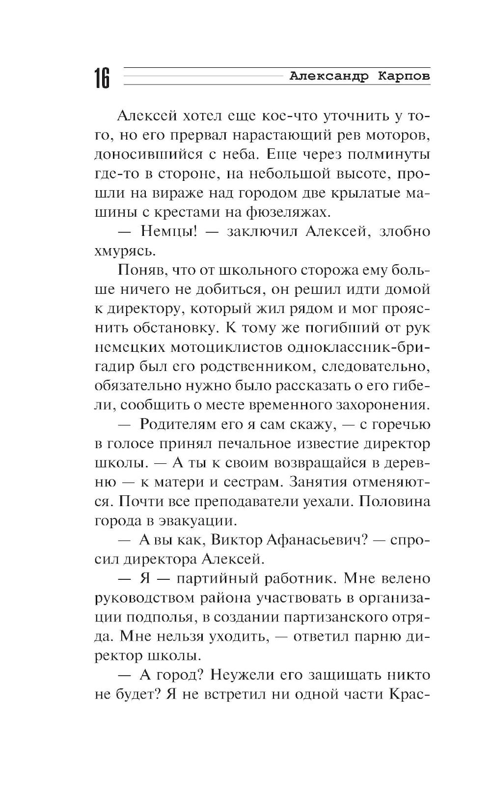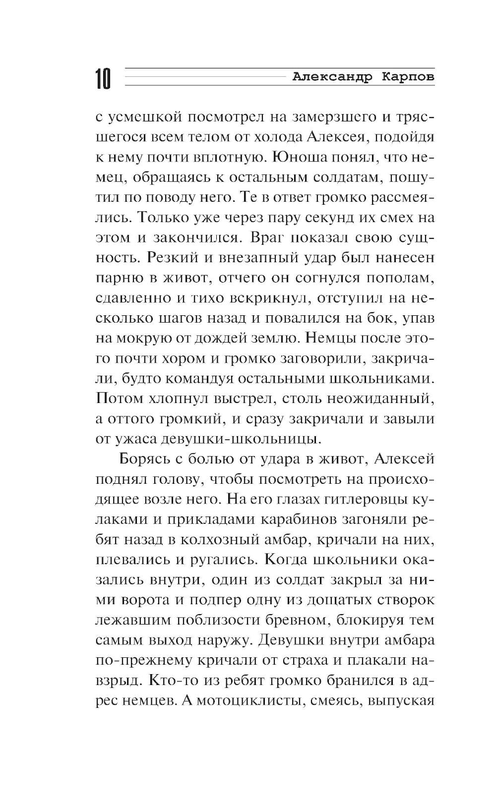 В размеренную жизнь семнадцатилетнего Алексея Соколова война ворвалась внезапно. Разлука с семьей, оккупация родного края и зверства врагов очень скоро превратили юношу в решительного бойца. Собрав вокруг себя сверстников, Алексей надеется разыскать партизан и вместе с ними бить фашистов. Однако примкнуть к отряду у ребят не получается. Тогда, раздобыв оружие, они начинают действовать самостоятельно: поджигают немецкий склад, уничтожают отряд полицаев, готовят диверсии на дорогах. Очень скоро гитлеровцы понимают, что имеют дело с серьезным изобретательным противником, и разрабатывают против группы Соколова необычную карательную операцию...| Издательство | Эксмо |