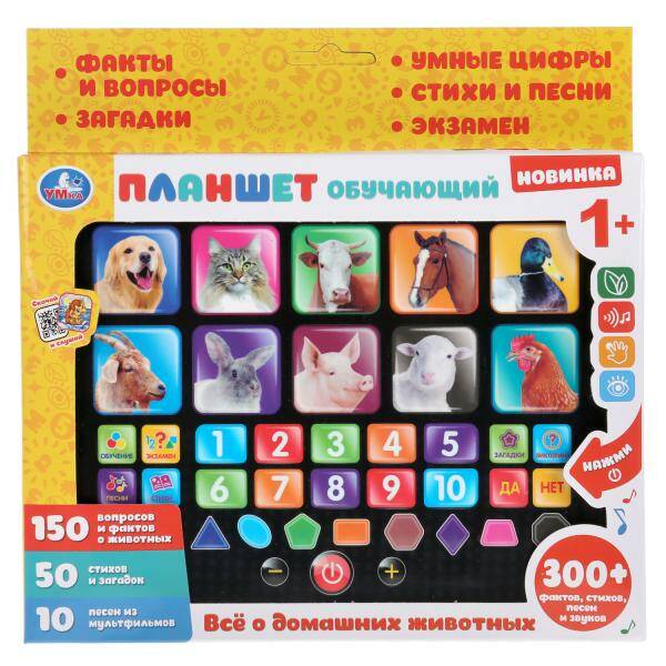 Сенсорный планшет домашние животные.300фактов,стихов,загадок,звуков.кор.бат. Умка в кор.40шт