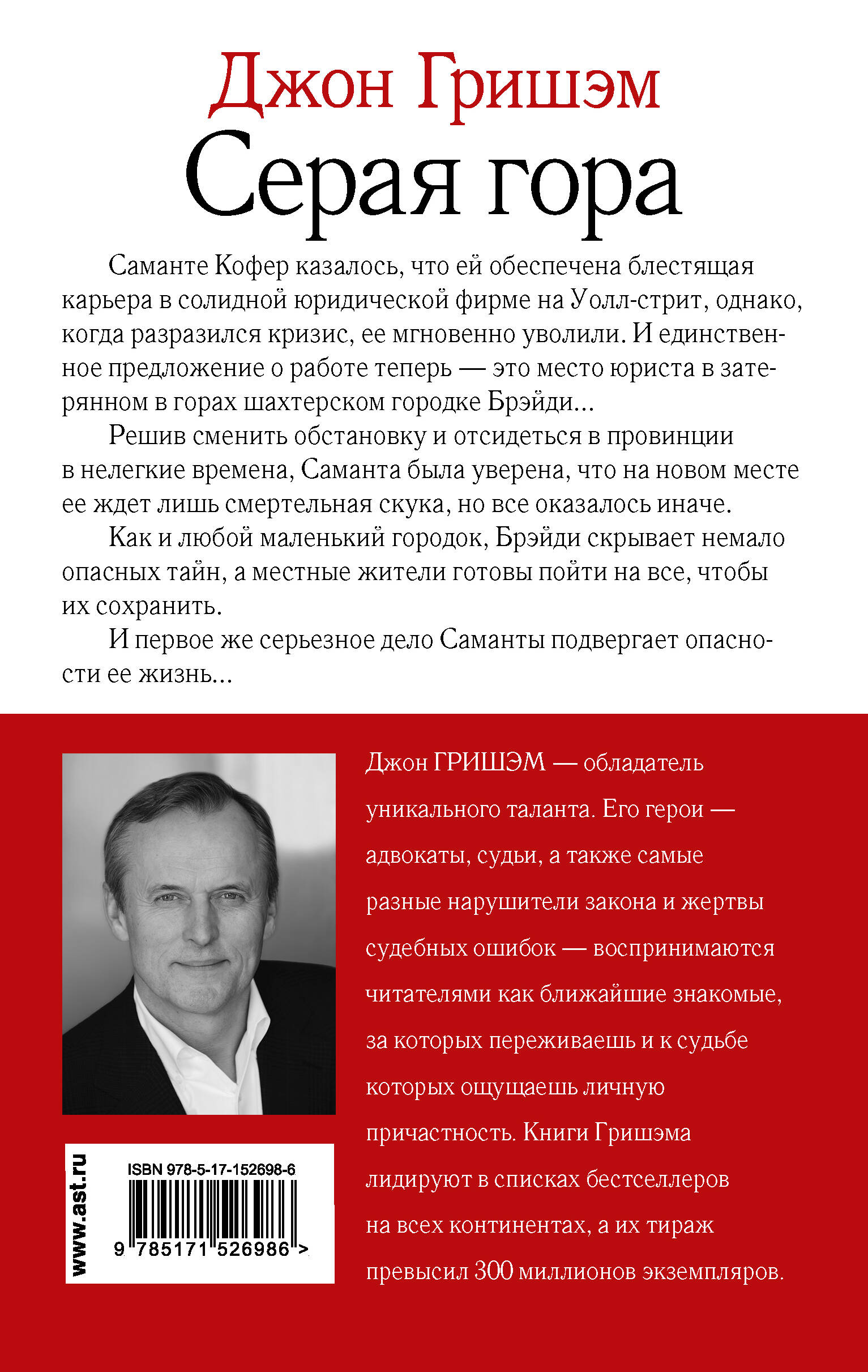 Саманте Кофер казалось, что ей обеспечена блестящая карьера в солидной юридической фирме на Уолл-стрит, однако, когда разразился кризис, ее мгновенно уволили. И единственное предложение о работе теперь - это место юриста в затерянном в горах шахтерском городке Брэйди… Решив сменить обстановку и отсидеться в провинции в нелегкие времена, Саманта была уверена, что на новом месте ее ждет лишь смертельная скука, но все оказалось иначе. Как и любой маленький городок, Брэйди скрывает немало опасных тайн, а местные жители готовы пойти на все, чтобы их сохранить. И первое же серьезное дело Саманты подвергает опасности ее жизнь…| Издательство | ИЗДАТЕЛЬСТВО "АСТ" |