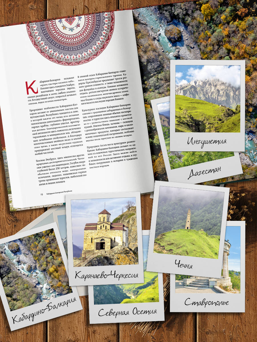 Северный Кавказ - один из самых ярких и многогранных регионов России, в котором пересекаются древнейшие культуры, языки, религии и народы. Вы увидите, как традиции вплетаются в повседневность, как сохраняется идентичность каждой республики и как они становятся частью современной России - яркой, многоголосой, живой и темпераментной. Вас ждет незабываемое путешествие по Кабардино-Балкарии, Карачаево-Черкесии, Северной Осетии, Чечне, Дагестану, Ингушетии и Ставропольскому краю. Вы познакомитесь с: • географическим и этнокультурным разнообразием - от лакских аулов до чеченских башен; • историческими вехами - ролью Кавказа в Российской империи и жизнью республик в XXI веке; • природными ландшафтами и уникальными памятниками: высшей точкой Европы - красавцем Эльбрусом, курортом Архыз, «городом мёртвых» - Даргавсом, скальными храмами Ингушетии, плато Бермамыт, Аргунским ущельем, современным и ярким символом Чечни - городом Грозным; • культурой и традициями: как национальные ремесла, музыка, танцы и кухня отражают дух каждого народа - от осетин и чеченцев до дагестанцев и карачаевцев. Эта книга станет прекрасным подарком для всех, кто хочет лучше узнать свою страну, поможет спланировать интересные маршруты для отдыха, а также покажет удивительные места, которые навсегда останутся в вашем сердце. И, конечно, издание будет полезно путешественникам, преподавателям, студентам, экскурсоводам и всем, кто стремится увидеть Кавказ в его подлинной глубине, а не только на открытках! Добро пожаловать на Северный Кавказ!| Издательство | ООО "Издательство "Эксмо" |