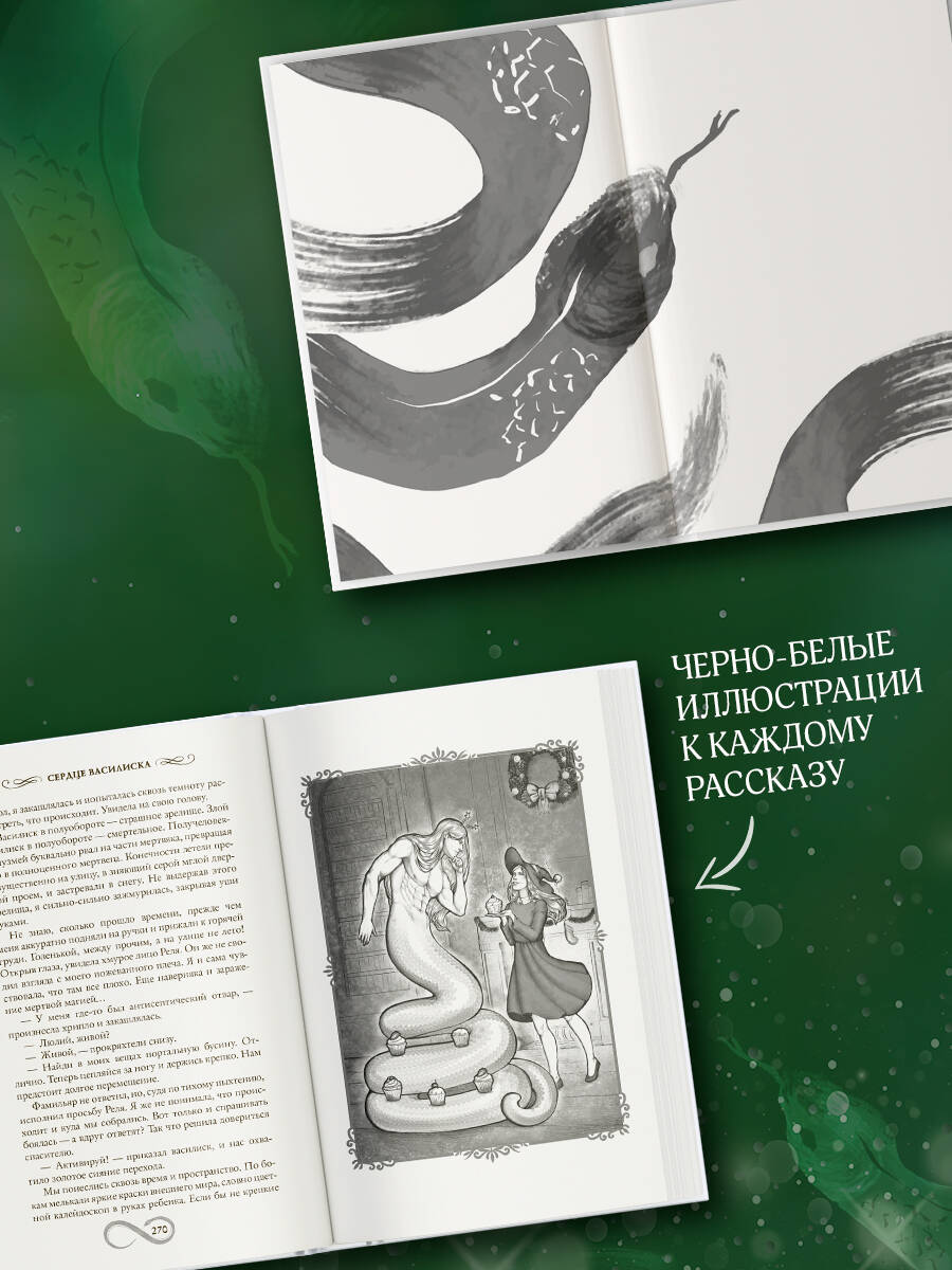 - Специально к году Змеи: сборник рассказов главных чаровниц мира ромэнтези. - Захватывающие истории о нагах, василисках и прочих ползучих созданиях от Франциски Вудворт, Марго Генер, Ники Ерш, Елены Малиновской и не только. - Завораживающая обложка, отделанная фольгой и глиттером. - Иллюстрации ко всем рассказам от @Ksana_art. - Отличный подарок ценителям романтического фэнтези.