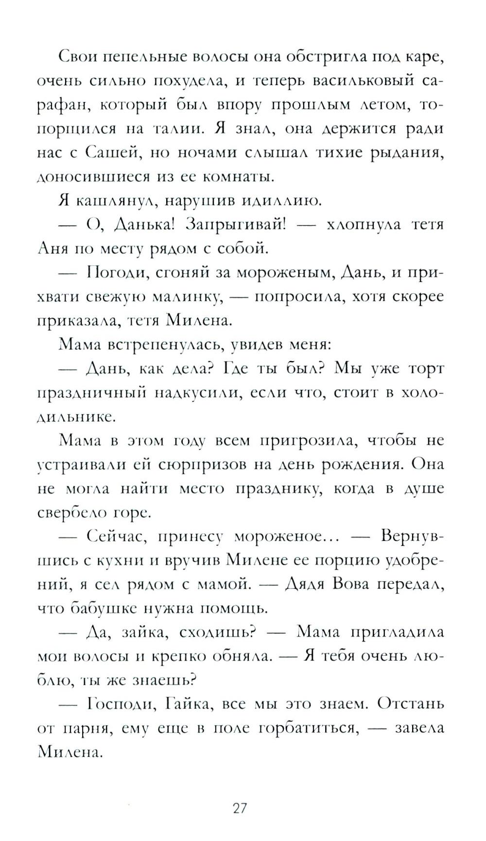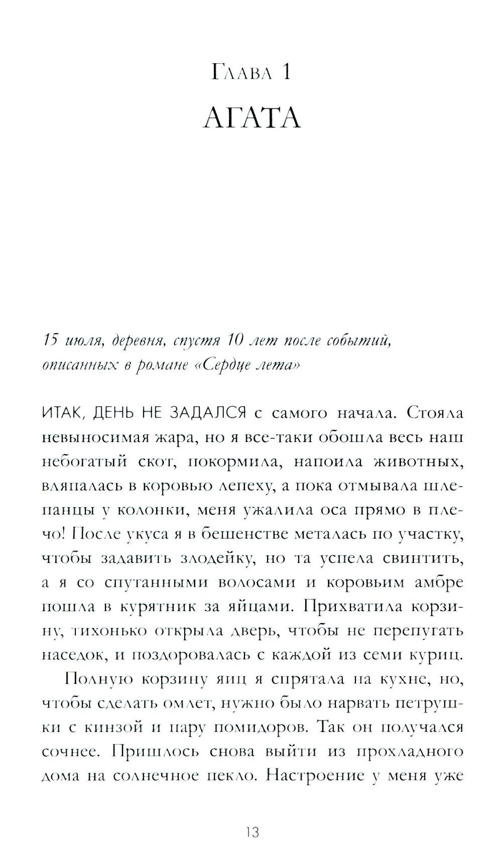 Это история о любви, случившейся в сердце зимы. Подарочное издание самого нежного романа Хелены Хейл! «Сердце зимы» - история, полная ностальгии и светлых воспоминаний о первой любви. Трепетный и головокружительный роман выходит в новом, волшебном оформлении, с обложкой и иллюстрациями Анастасии Акируш, цветными форазцем и нахзацем и атмосферным дизайном страниц. Для всех, кто полюбил «Сердце лета» и другие любовные романы Хелены Хейл! Агата. Я жила простой жизнью в деревне, не думая о будущем и не вспоминая маму. Пока мне на голову не свалился этот странный парень. За короткое лето Даня стал для меня самым близким человеком. Но согреет ли он мое сердце, когда наступит зима? Даня. Я совершил ошибку, но ей удалось меня спасти. Случай столкнул нас не просто так, только она смогла отвлечь меня от горя. Колючая, холодная, Агата избегает меня, но нас тянет друг к другу. Что будет, когда закончится лето и нас разлучит зима? Виталик. Я любил ее всю жизнь. Я люблю ее сейчас. Я буду любить ее этой вечной зимой. И никому ее не отдам. «Сердце зимы» - история о любви, семейных отношениях, мечтах и о том, что никогда не поздно начать все сначала, замечательная художественная литература для уютных вечеров за чтением. Она покорит тех, кто ищет по-настоящему согревающие книги про любовь, интересные книги про взросление и первые чувства, современные романы Young Adult и популярные романы о любви редакции Trendbooks. Цветные иллюстрации и нежный дизайн страничек этой clever книги помогают погрузиться в атмосферу истории и делают ее чудесным подарком всем, кому интересны современная литература и книги для взрослых в жанре романтики, книги романы о любви Хелены Хейл, и другие книги 18+, которые выпускает издательство Clever.