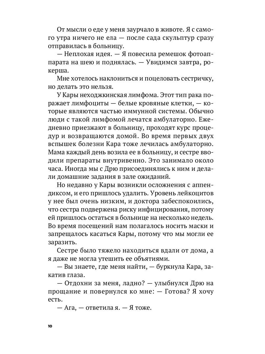 После знакомства с Оливером, солистом группы «Сердцееды», жизнь Стеллы внезапно превращается в жизнерадостную песенку о любви. Но разве можно ходить на свидания, веселиться и валять дурака, когда твоя сестра страдает от рака?| Издательство | Рипол Классик |