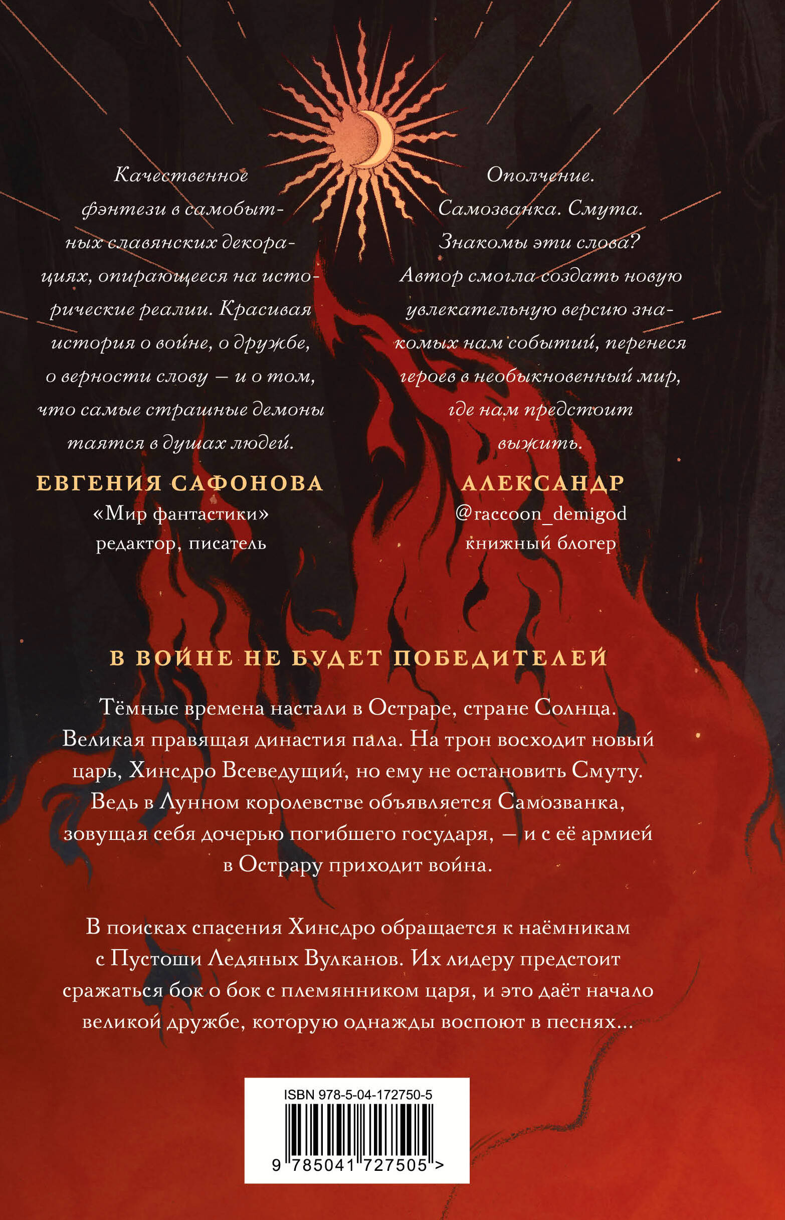 Тёмные времена настали в Остраре, стране Солнца. Великая правящая династия пала. На трон восходит новый царь, Хинсдро Всеведущий, но ему не остановить Смуту. Ведь в Лунном королевстве объявляется Самозванка, зовущая себя дочерью погибшего государя, - и с её армией в Острару приходит война. В поисках спасения Хинсдро обращается к наёмникам с Пустоши Ледяных Вулканов. Их лидеру предстоит сражаться бок о бок с племянником царя, и это кладёт начало великой дружбы, которую однажды воспоют в песнях. Но молодые полководцы не знают: в войне не будет победителя, а враг - не в рядах Лунной армии. Цена вражды - дружба, сгубленная в первый год бед. Цена верности - предательство. А цена жизни - смерть... Для поклонников «Гойды» Джека Гельба! Эпическое славянское фэнтези об альтернативной Руси времен Смуты. Красивейшая обложка популярной художницы Djuney9 (больше 25 000 подписчиков в ВК). Екатерина Звонцова - автор бестселлера «Теория бесконечных обезьян». Успешно издавалась сначала под псевдонимом Эл Ригби, потом под собственным именем.
