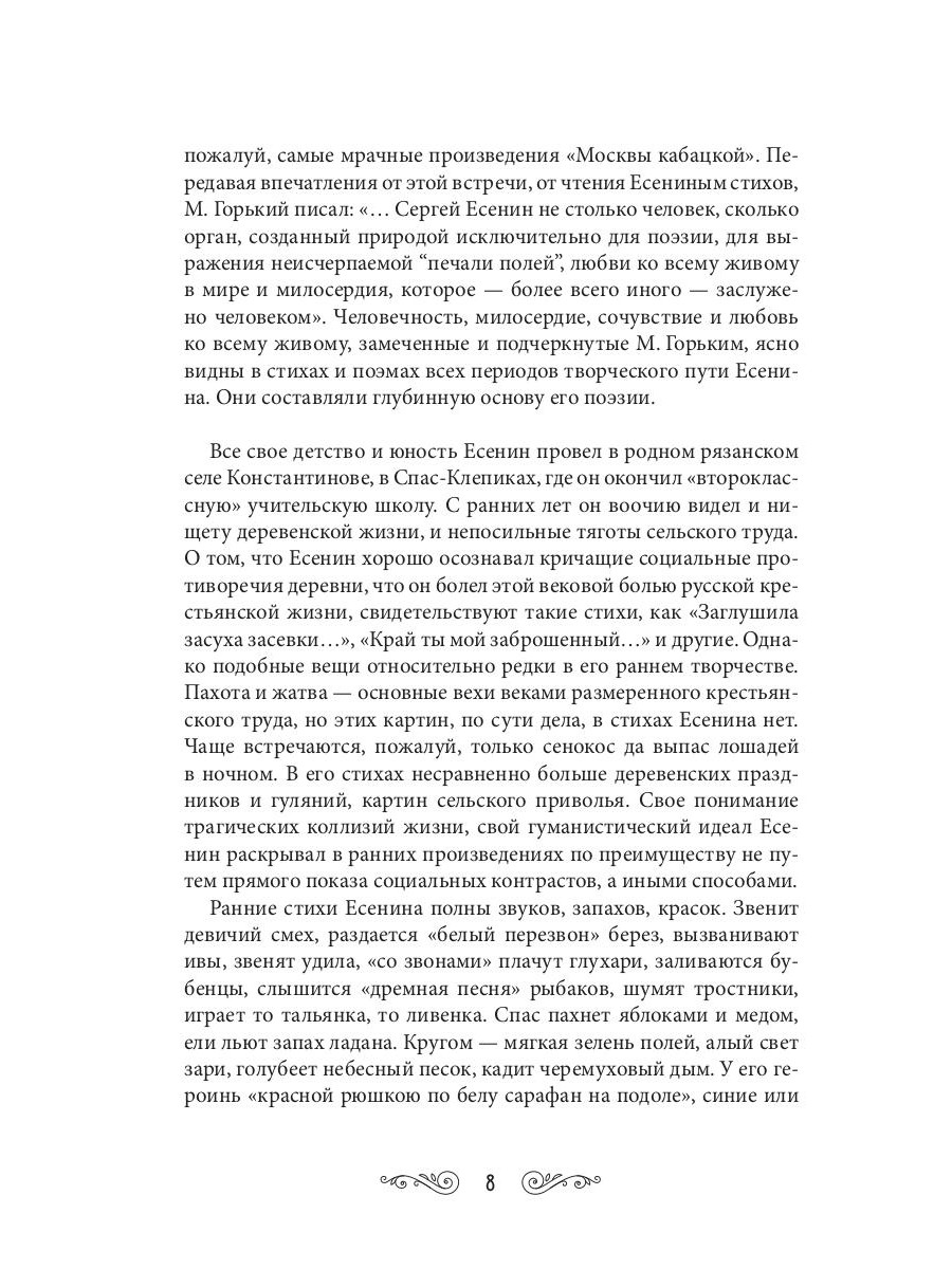 Сергей Есенин - поистине народный поэт, потрясающий современников и потомков яркостью и самобытностью своего огромного таланта. Время не властно над его поэзией: давно ушли в прошлое многие события, волновавшие поэта, изменилась реальность, питавшая его стихи, но каждое новое поколение открывает для себя в Есенине нечто близкое и дорогое.