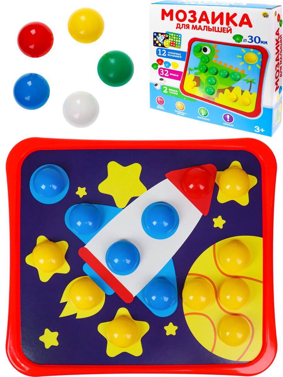 Аннотация: Серия "Мозайкин для малышей". Мозаика 12 картинок в коробке (32 фишки + 2 глазок) Арт. М-7166