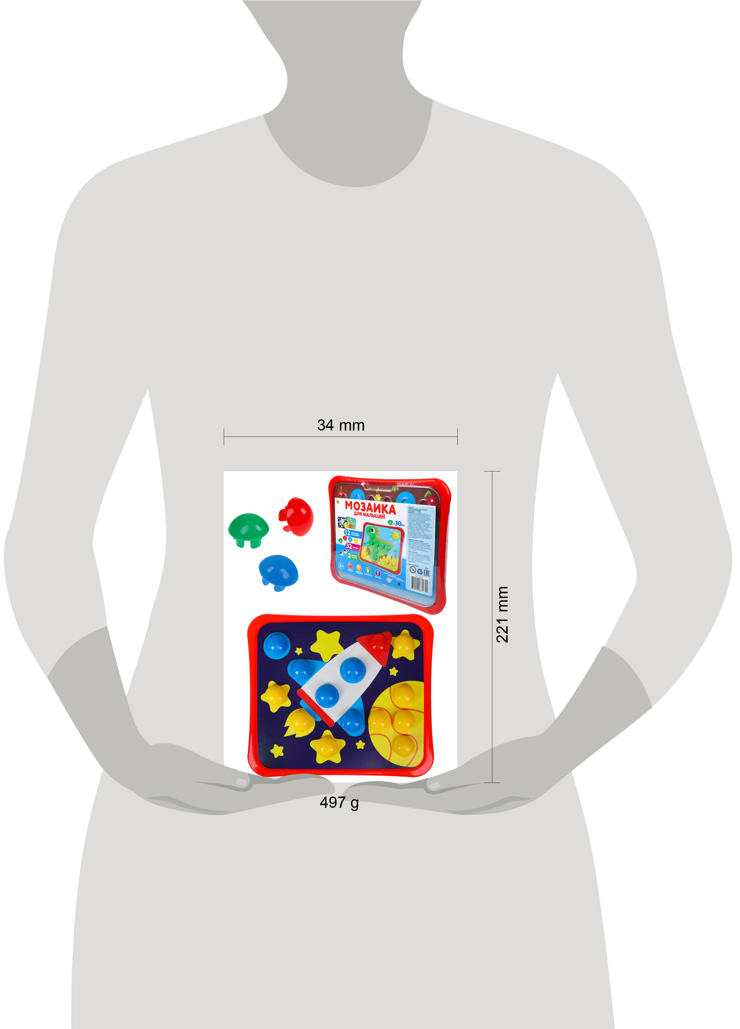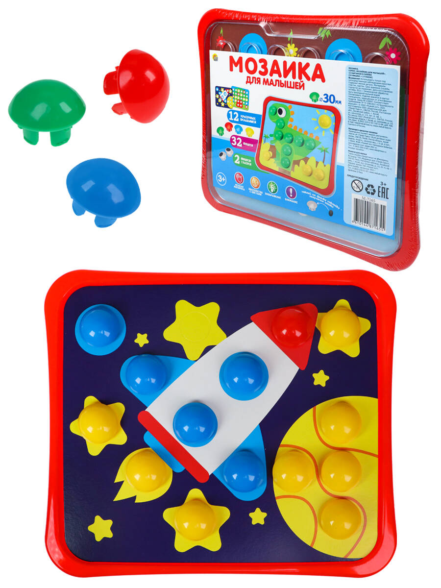 Мозаика серии "Мозайкин для малышей" придется по душе любому ребенку! Малышам нужно будет заполнять отверстия в картинках соответствующими по цвету элементами, а также размещать в определённых местах пуговки-глазки. Такое занятие способствует развитию внимательности, мелкой моторики, творческих способностей, реакции и зрительного восприятия. В набор входит 12 картинок в плёнке (32 фишки + 2 глазок).