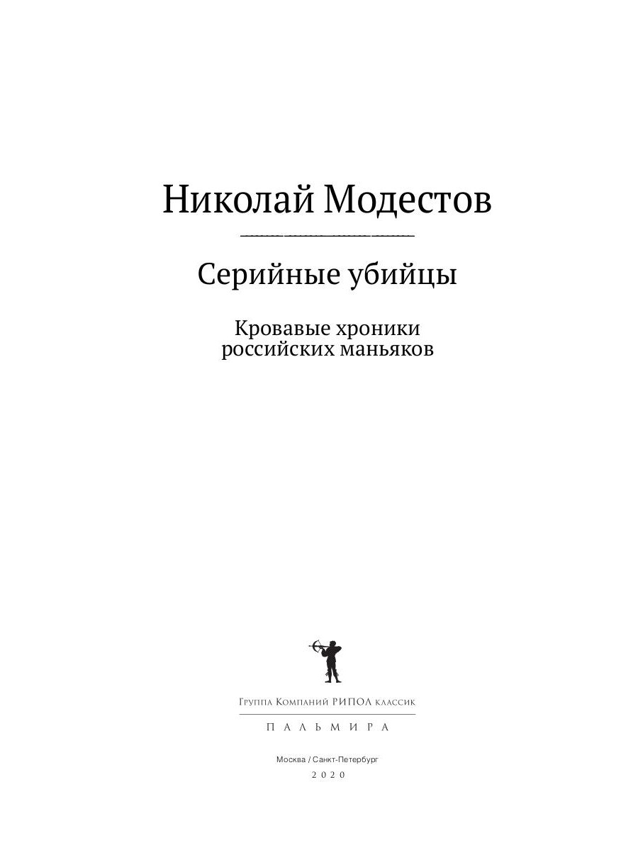В своем обширном исследовании известный писатель и криминальный журналист Николай Модестов не только приводит хронику серийных преступлений на территории бывшего СССР и современной России, но и ставит важный вопрос: как создать действенные инструменты для поиска зверей в человеческом обличье?| Издательство | Рипол Классик |
