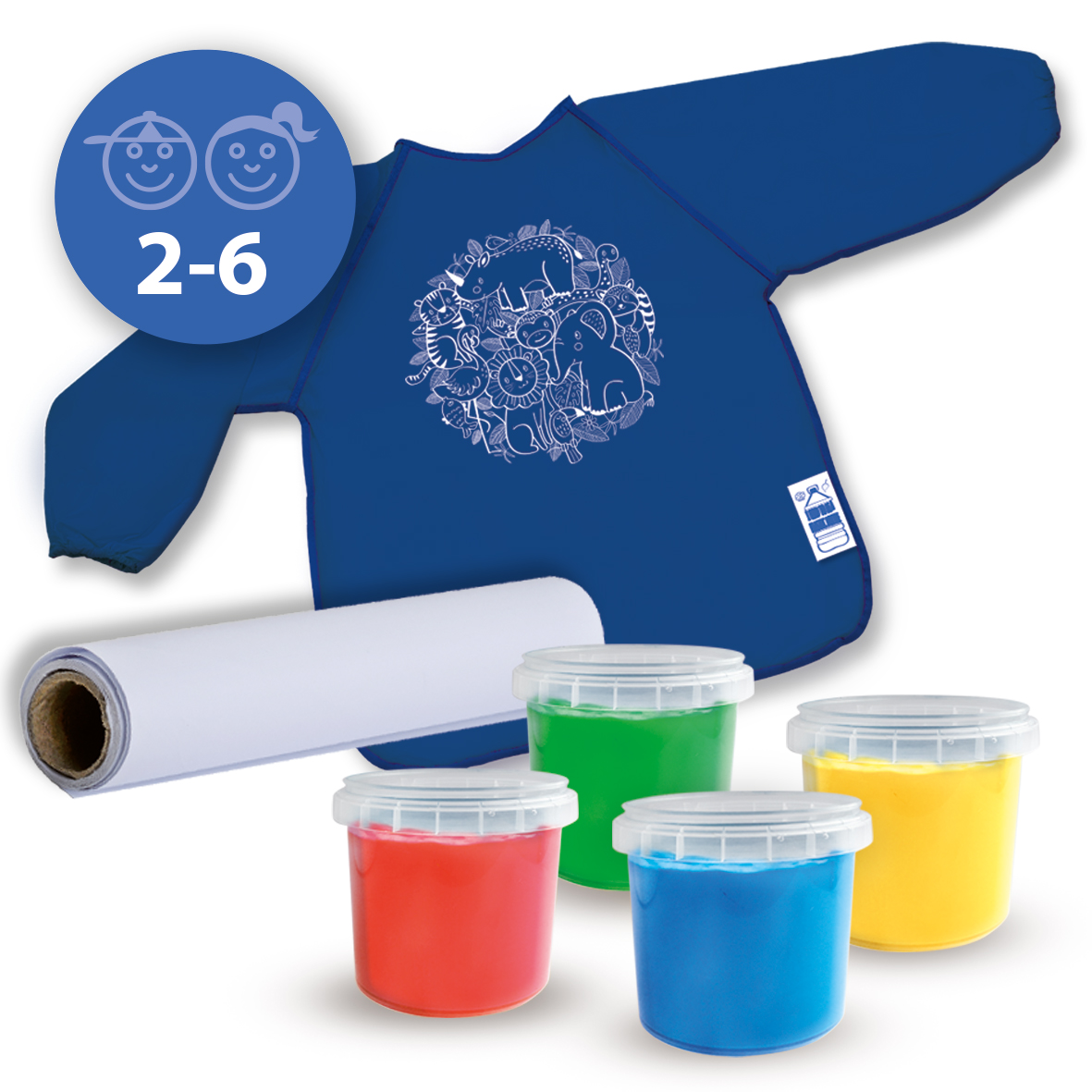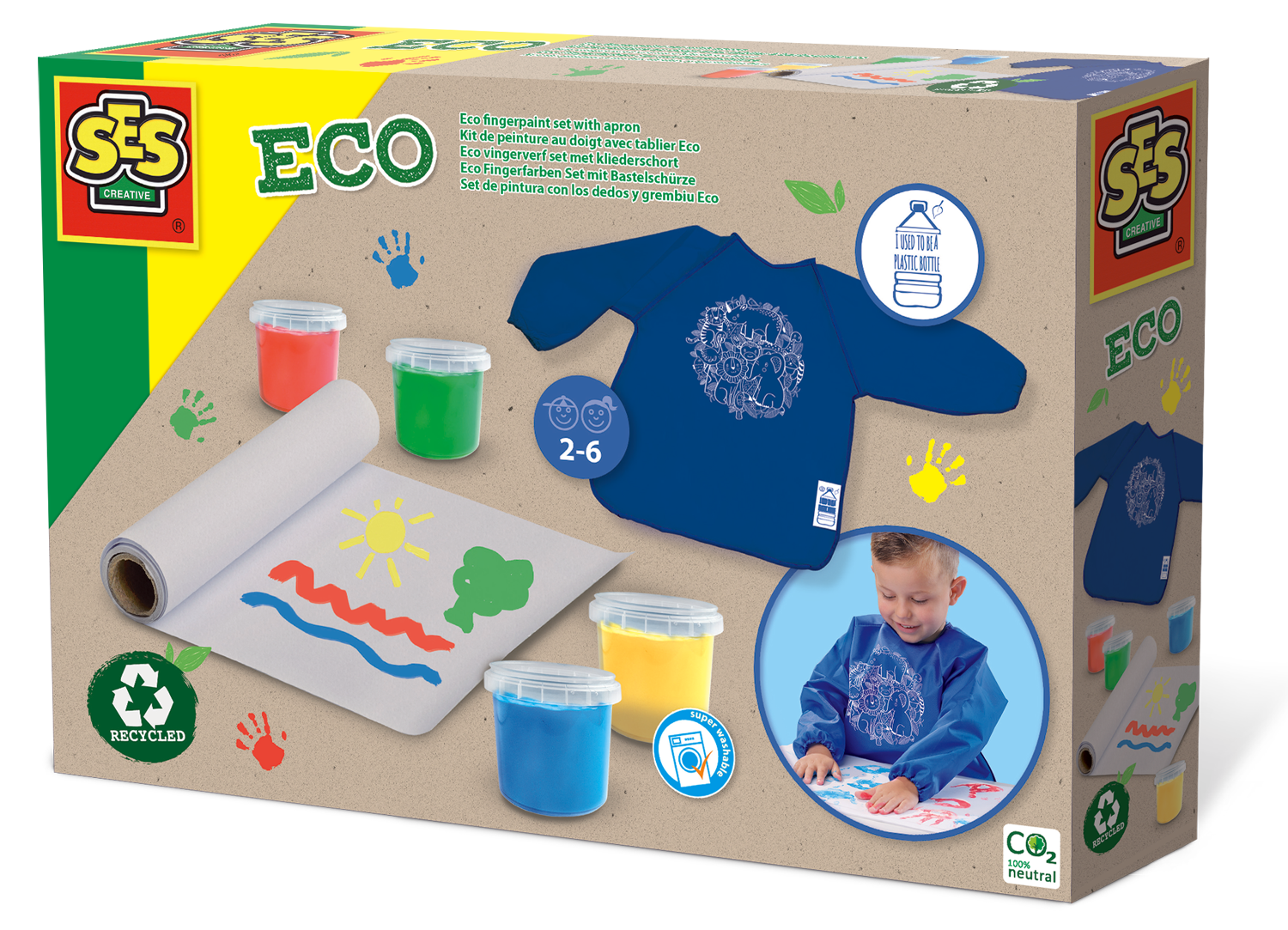 Этот эко-набор для рисования пальцами разноцветные краски для пальцев, фартук для занятий и рулон переработанной бумаги, которую вы можете использовать для создания красивых произведений искусства. Выберите нужный цвет и рисуйте пальцами. Вам не нужно беспокоиться о том, что испачкается одежда, потому что фартук в комплекте защитит вас от пятен. Фартук на 100% изготовлен из переработанных пластиковых бутылок и специально разработан для нашей линии ЭКО. Линия ЭКО содержит более высокий процент натурального сырья и использует переработанные материалы.