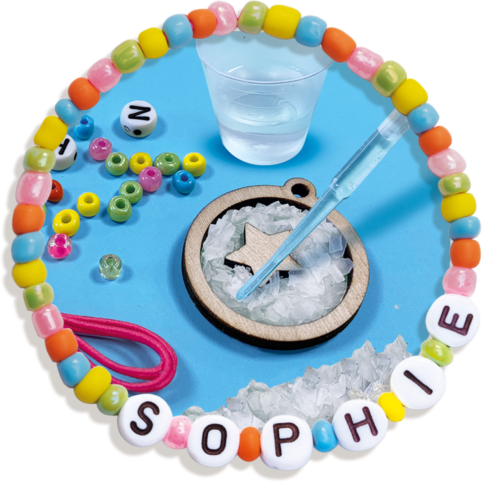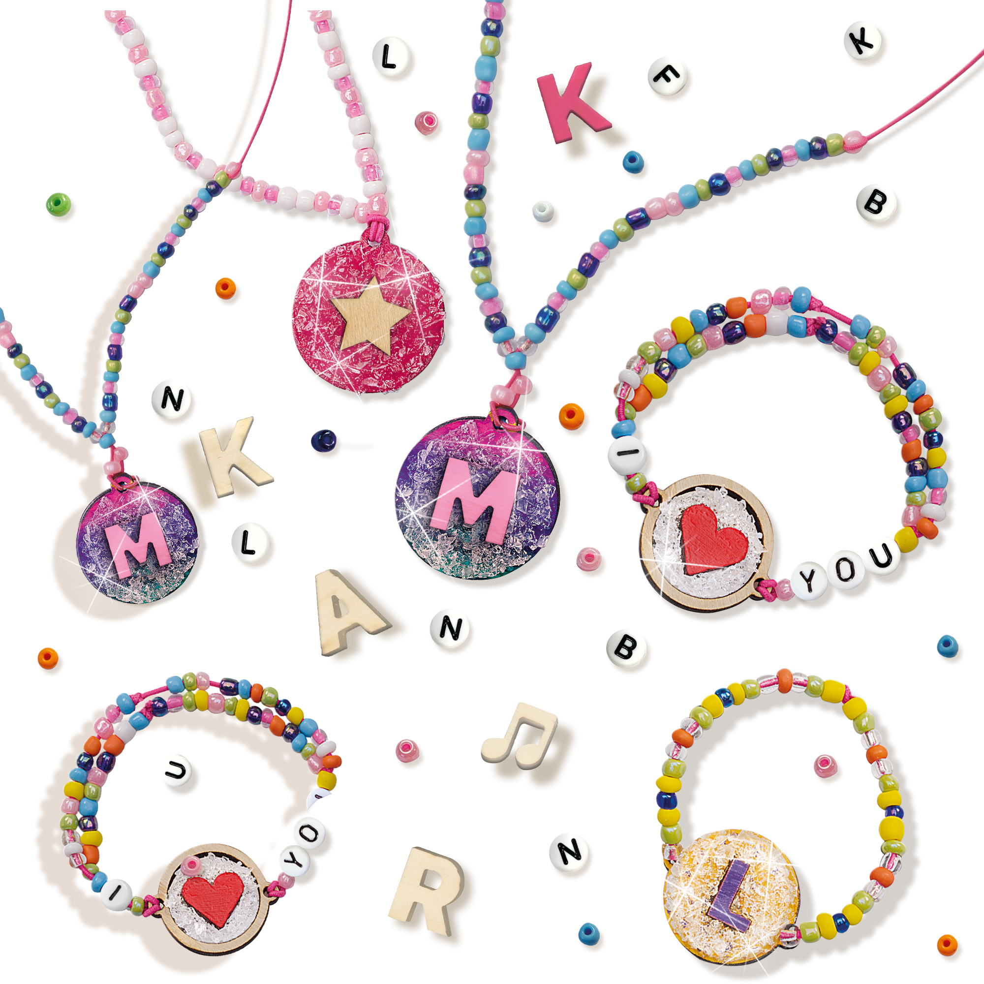 Этот набор позволяет создать не просто украшение, а очень личное украшение - со своим именем, буквой или посланием. Вы можете решить, какое имя вы хотите повесить на свое украшение с помощью деревянного алфавита и бусин с 200 буквами. Начните с дерева, шести цветов краски, забавных стеклянных бусин и, конечно же, легкой алмазной пыли. Вы сможете вставить настоящие кристаллы в свои амулеты для дополнительного блеска.