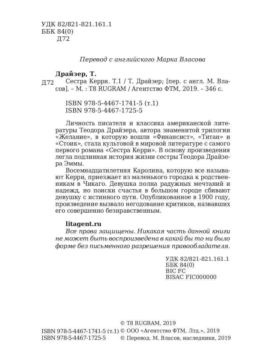Личность писателя и классика американской литературы Теодора Драйзера, автора знаменитой трилогии «Желание», в которую вошли «Финансист», «Титан» и «Стоик», стала культовой в мировой литературе с самого первого романа «Сестра Керри». В основу произведения легла подлинная история жизни сестры Теодора Драйзера Эммы.