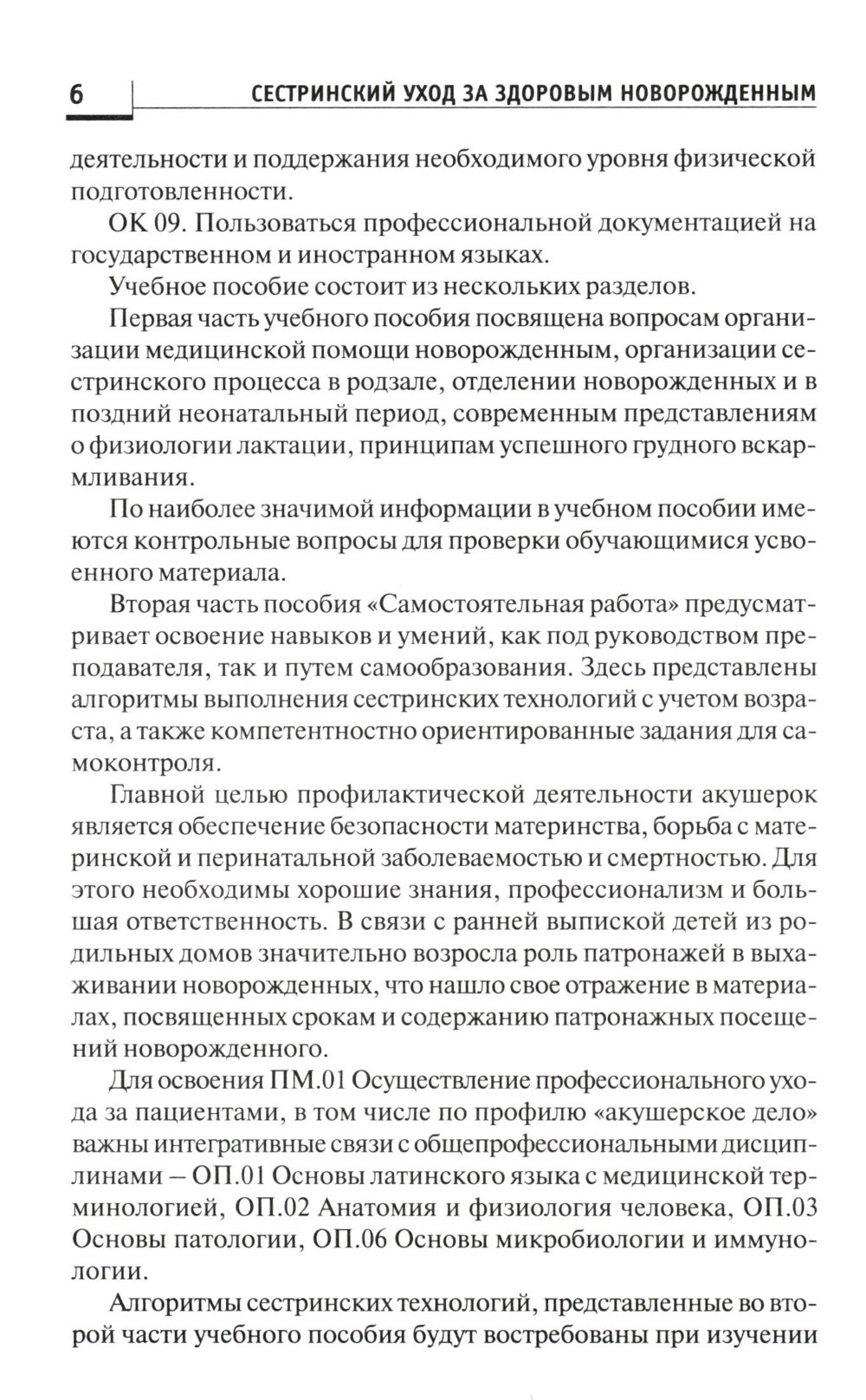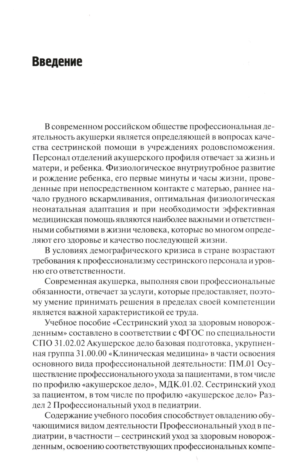 Учебное пособие «Сестринский уход за здоровым новорожденным» составлено в соответствии с ФГОС по специальности СПО 31.02.02 «Акушерское дело» базовая подготовка, укрупненная группа 31.00.00 «Клиническая медицина» в части освоения основного вида профессиональной деятельности: ПМ.01 Осуществление профессионального ухода за пациентами, в том числе по профилю «акушерское дело», МДК.01.02. Сестринский уход за пациентом, в том числе по профилю «акушерское дело» Раздел 2 Профессиональный уход в педиатрии. В книге рассматриваются вопросы организации медицинской помощи новорожденным в России, организация сестринского процесса в родзале, отделении новорожденных, в поздний неонатальный период, а также современные представления о вскармливании новорожденных. Уделено внимание вопросам деонтологии в работе медработников акушерского стационара. Пособие предусматривает освоение знаний, навыков и умений, как под руководством преподавателя, так и путем самообразования. Компетентностно ориентированные задания для самоконтроля позволят выработать умение анализировать полученную информацию и обосновывать тактику акушерки в конкретных ситуациях. Алгоритмы сестринских технологий, представленные во второй части учебного пособия будут востребованы в дальнейшем при изучении МДК.01.02. Сестринский уход за пациентом, в том числе по профилю «акушерское дело», Раздел 2 Профессиональный уход в педиатрии (при заболеваниях новорожденных и детей грудного возраста), а также в последующей практической работе. Учебное пособие предназначено для студентов медицинских колледжей и училищ, а также для слушателей факультетов последипломного образования специалистов среднего звена. Книга может быть интересна медицинским сестрам отделений новорожденных, детских поликлиник и домов ребенка, фельдшерам общей практики.| Издательство | Феникс |