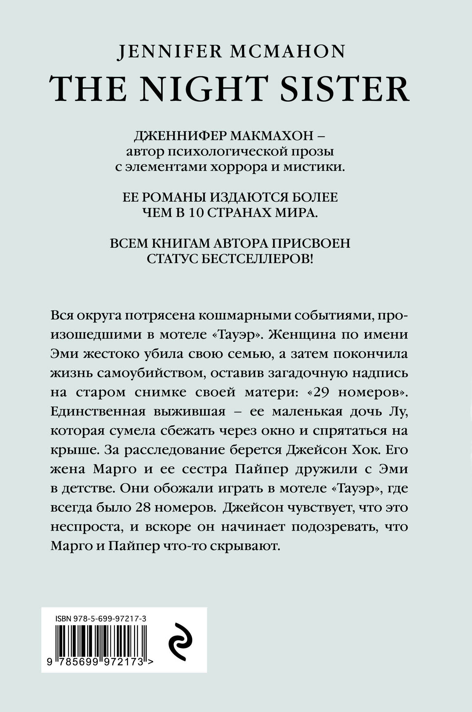 Вся округа потрясена кошмарными событиями, произошедшими в мотеле «Тауэр». Женщина по имени Эми жестоко убила свою семью, а затем покончила жизнь самоубийством, оставив загадочную надпись на старом снимке своей матери: «29 номеров». Единственная выжившая - ее маленькая дочь Лу, которая сумела сбежать через окно и спрятаться на крыше. За расследование берется Джейсон Хок. Его жена Марго и ее сестра Пайпер дружили с Эми в детстве. Они обожали играть в мотеле «Тауэр», где всегда было 28 номеров. Джейсон чувствует, что это неспроста, и вскоре он начинает подозревать, что Марго и Пайпер что-то скрывают. *** Об авторе: Дженнифер Макмахон - автор бестселлеров с мировым именем, мастер психологической прозы с элементами мистики и хоррора. Ее романы переведены более чем на 15 языков мира. Жанр: Психологический роман-хоррор, мистический триллер. О книге: В маленьком американском городке в мотеле под названием «Тауэр» происходит жуткое убийство: женщина расправляется со всей своей семьей, а после кончает с собой, оставив странную записку. Выжить удается лишь ее десятилетней дочери, которая сбежала через окно и спряталась на крыше… Расследованием занимается полицейский Джейсон Хок, который знал погибшую еще в детстве. Он обнаруживает, что причины страшного события уходят в прошлое и напрямую связаны с историей старого мотеля… Особенности: Действие романа разворачивается сразу в трех временных плоскостях: в 1955, 1989 и 2013 годах. Прошлое и настоящее причудливо переплетаются, создавая эффект полного погружения в историю нескольких поколений одной семьи. Автор использует элементы детектива, психологического романа и хоррора - предсказать концовку совершенно невозможно, книга держит в напряжении до последней страницы.| Издательство | ООО "Издательство "Эксмо" |