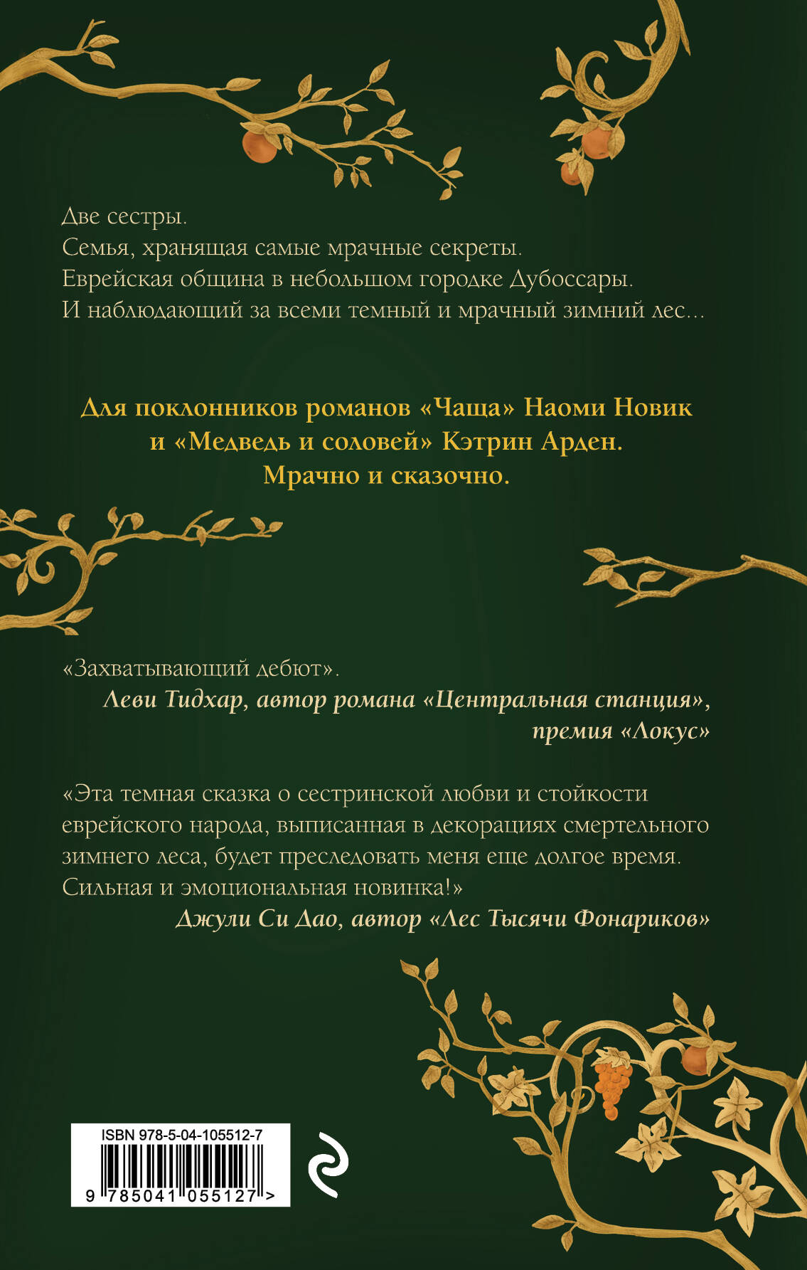 В каждой семье свои секреты... Две сестры. Семья, хранящая самые мрачные секреты. Еврейская община в небольшом городке Дубоссары. И наблюдающий за всеми темный и мрачный зимний лес... Когда местные жители начинают пропадать, а в лесу обнаруживают мертвые тела, население городка винит евреев. А ведь есть еще приезжие торговцы, которые взимают самую подозрительную плату и вообще, похоже, не являются людьми. Так кто же на самом деле несет ответственность за происходящее? А тем временем две сестры - Лайя и Либа - стремительно меняются: неутолимый голод у одной и желание летать у другой заставляют совершать самые странные поступки. Завораживающе красивое и до боли страшное повествование о двух сестрах, которые вынуждены быстро взрослеть, чтобы спасти друг друга, семью и свой народ. Для поклонников таких мрачных и сказочных по атмосфере книг как «Чаща» Наоми Новик, «Медведь и Соловей» Кэтрин Арден и «Орехового леса» Мелиссы Алберт.