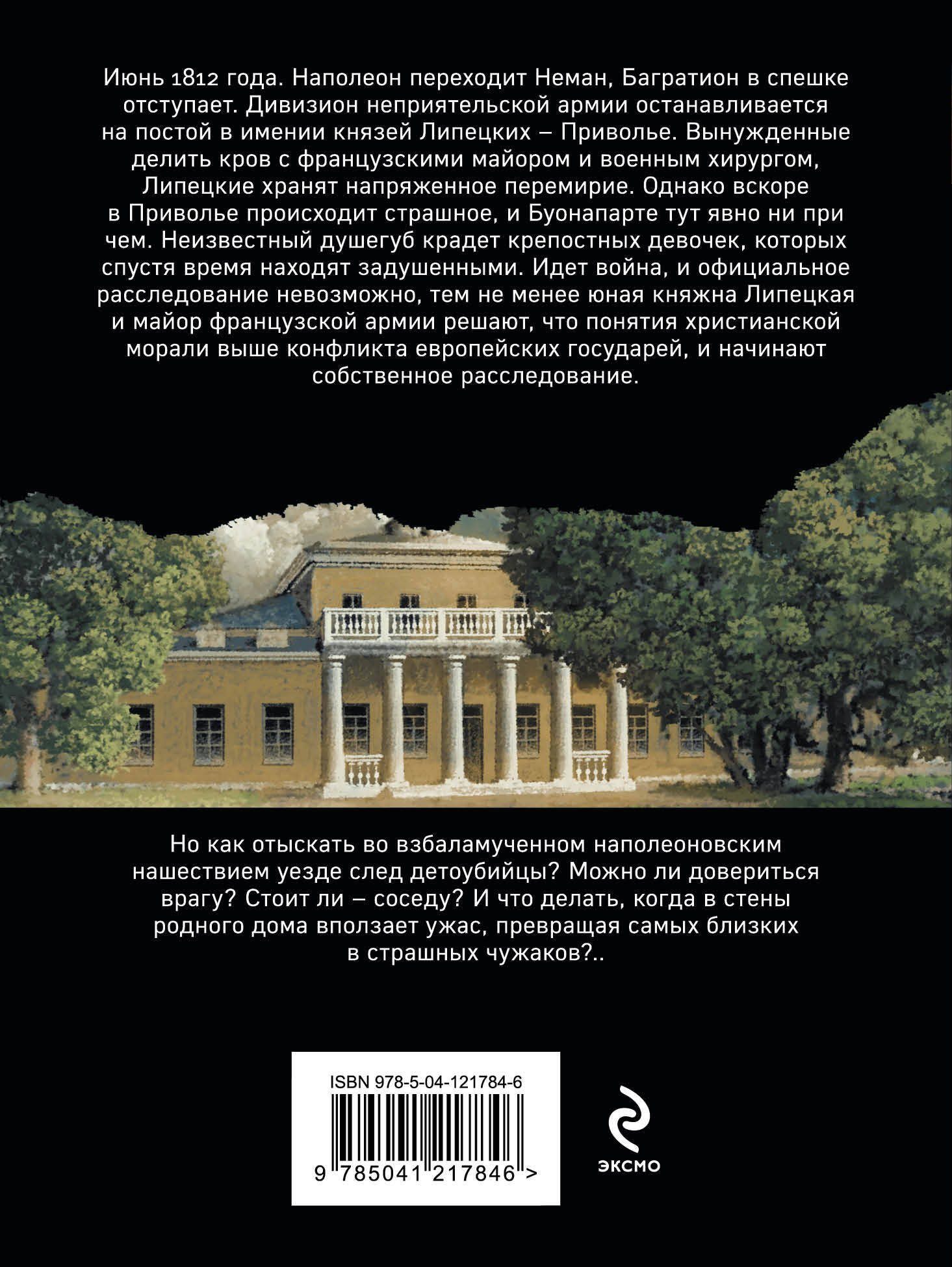 Июнь 1812 года. Наполеон переходит Неман, Багратион в спешке отступает. Дивизион неприятельской армии останавливается на постой в имении князей Липецких - Приволье. Вынужденные делить кров с французскими майором и военным хирургом, Липецкие хранят напряженное перемирие. Однако вскоре в Приволье происходит страшное, и Буонапарте тут явно ни при чем. Неизвестный душегуб крадет крепостных девочек, которых спустя время находят задушенными. Идет война, и официальное расследование невозможно, тем не менее юная княжна Липецкая и майор французской армии решают, что понятия христианской морали выше конфликта европейских государей, и начинают собственное расследование. Но как отыскать во взбаламученном наполеоновским нашествием уезде след детоубийцы? Можно ли довериться врагу? Стоит ли - соседу? И что делать, когда в стены родного дома вползает ужас, превращая самых близких в страшных чужаков?.. Детективы Дарьи Дезомбре отличает наличие тонкой интриги, мистических тайн и детального экскурса в историю, культуру и искусство. Над каждой новой книгой Дезомбре работает кропотливо. Воссоздавая прошлое, она читает мемуары, проводит много часов в библиотеках и музеях, собирает фотографии одежды и предметов прошлых эпох из семейных альбомов, журналов. Все книги автора переведены на иностранные языки и пользуются популярностью в Европе.| Издательство | ООО "Издательство "Эксмо" |