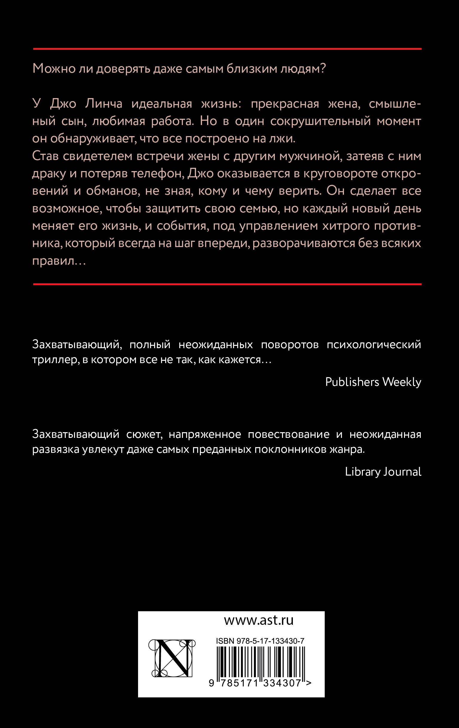 - Для всех поклонников психологических триллеров и подкастов жанра True Crime. - Для всех любителей захватывающих детективных триллеров в духе «Исчезнувшей» и «В тихом омуте». - Динамичное и увлекательное, полное неожиданных поворотов путешествие в пучину лжи и обмана. - Книги Т.М. Логана в Великобритании разошлись тиражом более 1 000 000 экземпляров. Его романы переведены на 22 языка!| Издательство | ИЗДАТЕЛЬСТВО "АСТ" |