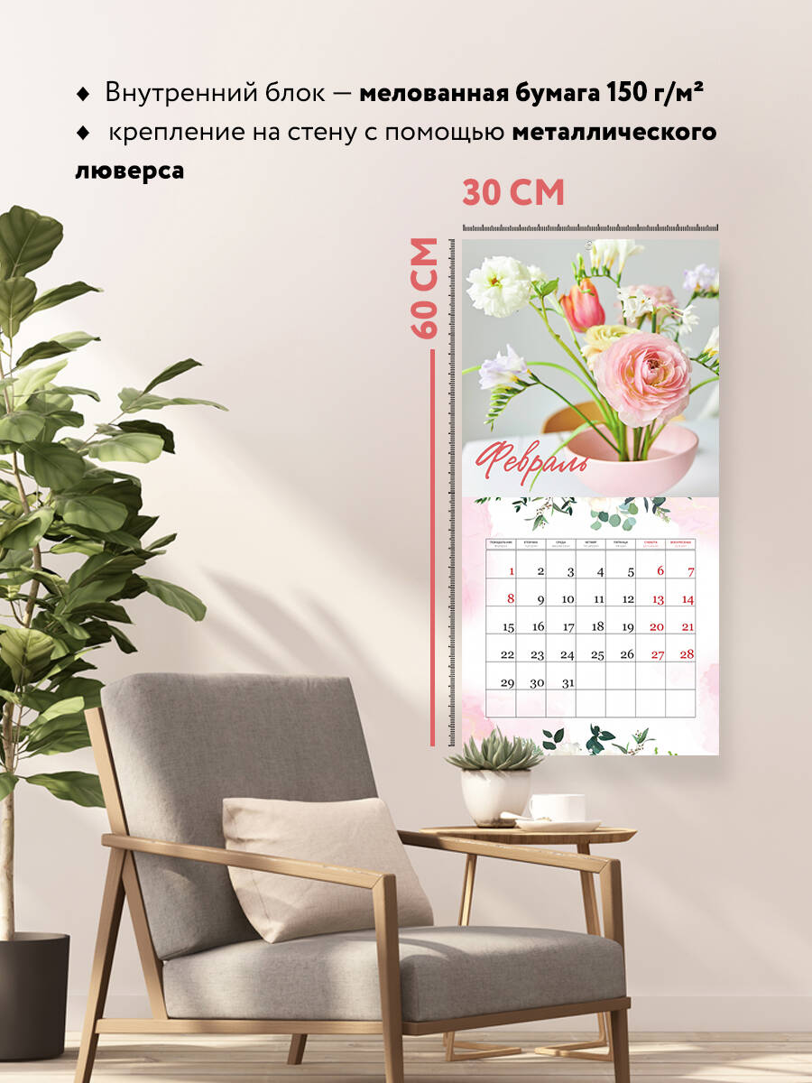 О серии: Наши настенные календари отличаются высоким качеством исполнения! Тщательно подобранные иллюстрации, напечатанные на глянцевой бумаге высочайшего качества, станут настоящим украшением дома, а в календарной сетке найдется место для ваших планов: большие клетки позволят делать записи и организовать свой год! В календаре также отмечены все государственные праздники. В серии настенных календарей издательства «ЭКСМО» каждый найдет тему по вкусу: великие художники, великолепные подборки с самыми знаменитыми произведениями искусства, легендарные кинематографические саги и игры, главные книжные авторы и бестселлеры, фотографии и иллюстрации любимых животных и многое-многое другое! О календаре: Белые, красные, с ленточкой, в вазочке и в коробочке - шедевры флористики в одном календаре. Каждый месяц представлен оригинальным букетом в соответствии с цветовой гаммой сезона. Для кого: Искусно собранные композиции прекрасно впишутся как в домашний, так и в деловой интерьер, цветы, которые не завянут и будут радовать весь год. Технические параметры: Тип календаря - настенный перекидной. Год - 2024. Календарная сетка - с разбивкой по месяцам. Вид скрепления - скрепка. Ширина - 30 см. Высота - 30 см. Внутренний блок - мелованная бумага 150 г/м2. Подложка - плотный гофрокартон для поддержания формы. Индивидуальная упаковка в плотный целлофановый пакет.| Издательство | ООО "Издательство "Эксмо" |