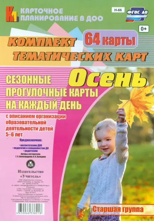 Комплект содержит 64 карты с сезонными осенними прогулками на каждый день для организации образовательной деятельности с детьми средней группы. Картотека имеет тематическую основу, в ней определены педагогические цели, целевые ориентиры образования, осваиваемые образовательные области, соответствующие ФГОС ДО. Каждая карта-прогулка пронумерована и предназначена для освоения детьми определенной темы в разных видах деятельности: исследовательская, игровая, речевая, коммуникативная, трудовая, познавательная. Предложен богатейший материал для активизации речевой деятельности: приметы, поговорки, пословицы, загадки, словесные игры, художественное слово, подобранный в соответствии с возрастом детей. Предназначен воспитателям, педагогам дополнительного и домашнего образования, родителям.