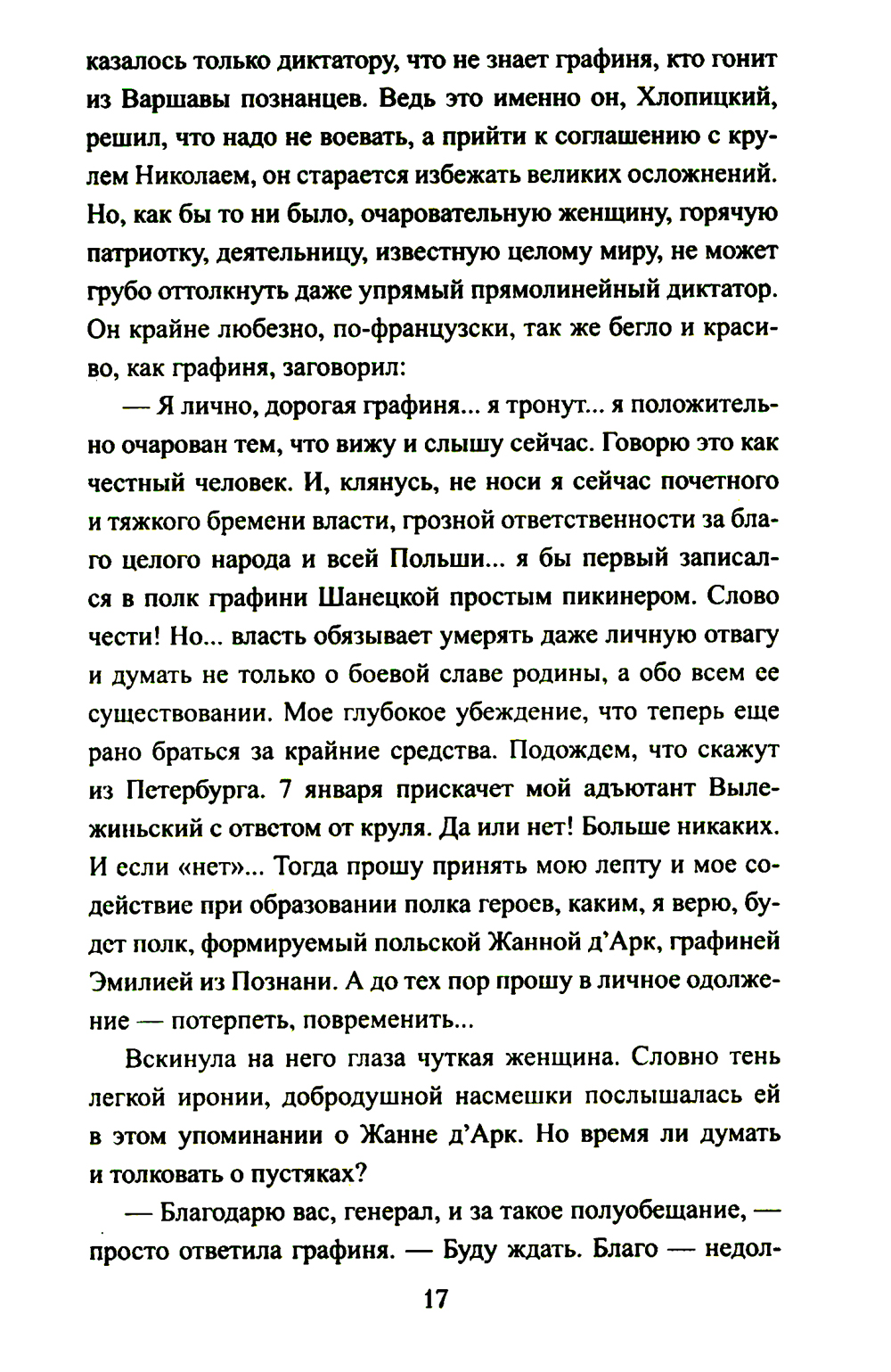 Начало 1831 года. Королевство Польское, находящееся в составе Российской империи, охвачено бунтом. Однако сами поляки полагают, что это не бунт, а революция. И коль скоро поляков называют французами Севера, то они намерены устроить революцию не хуже, чем во Франции. Весь цвет польской аристократии в деле. Что ни личность, то новый Лафайет, Робеспьер или новый Андре Шенье. Есть и своя Жанна д'Арк - молодая и красивая графиня Эмилия Шанецкая, которую знают даже в Париже. Однако, несмотря на обилие вождей, настоящего руководителя у польской «революции» нет, и это обернется для нее катастрофой. Эта книга является четвертой, заключительной, частью цикла романов Льва Жданова о польском восстании 1830-1831 годов. Первые три книги - «Польский вопрос», «Варшавский листопад» и «Осажденная Варшава» - ранее опубликованы в этой же серии.| Издательство | Вече |