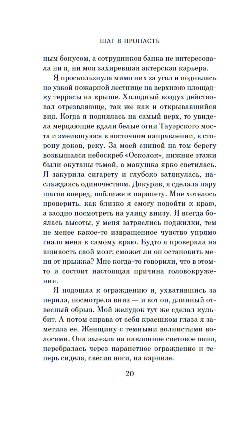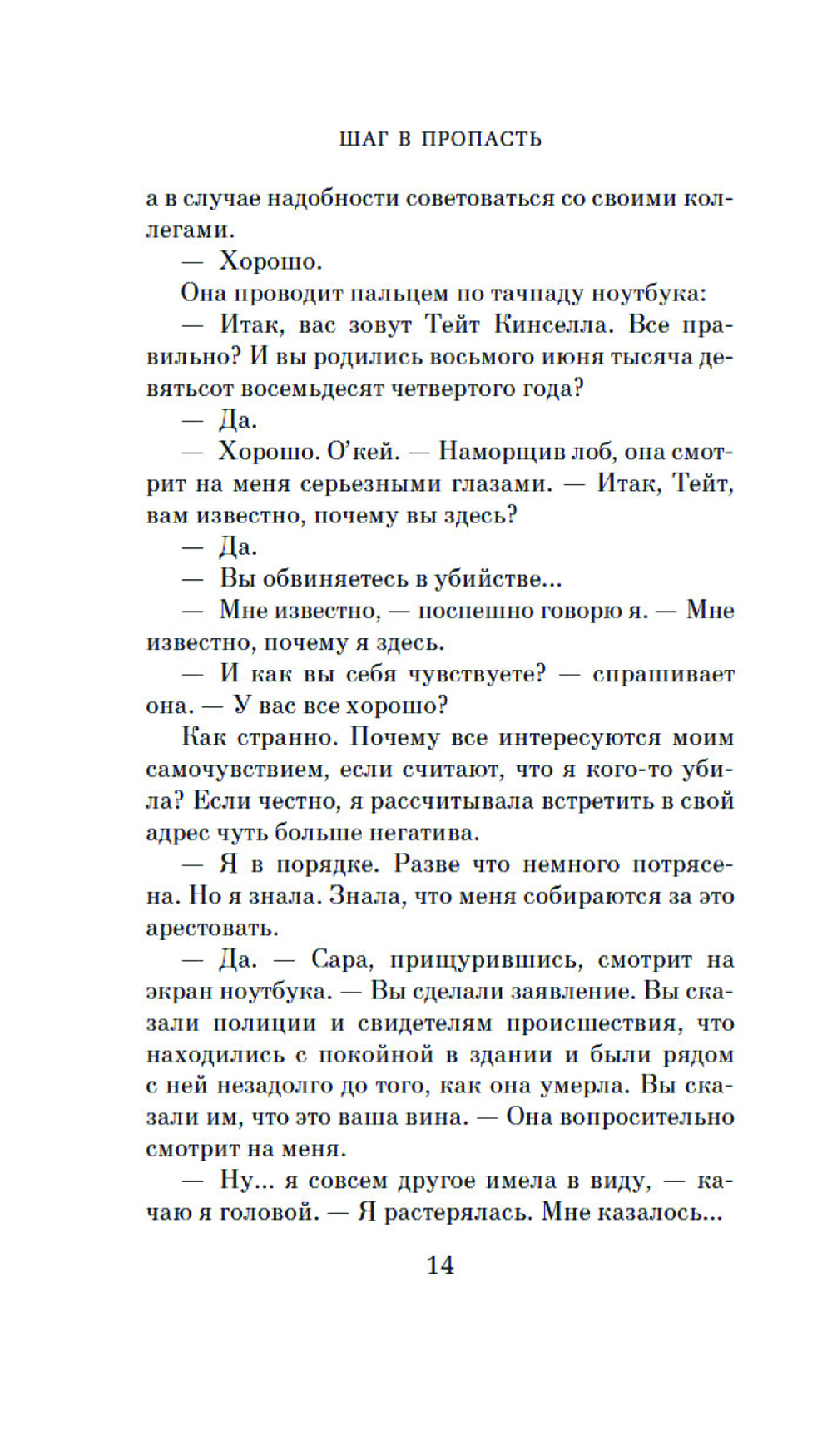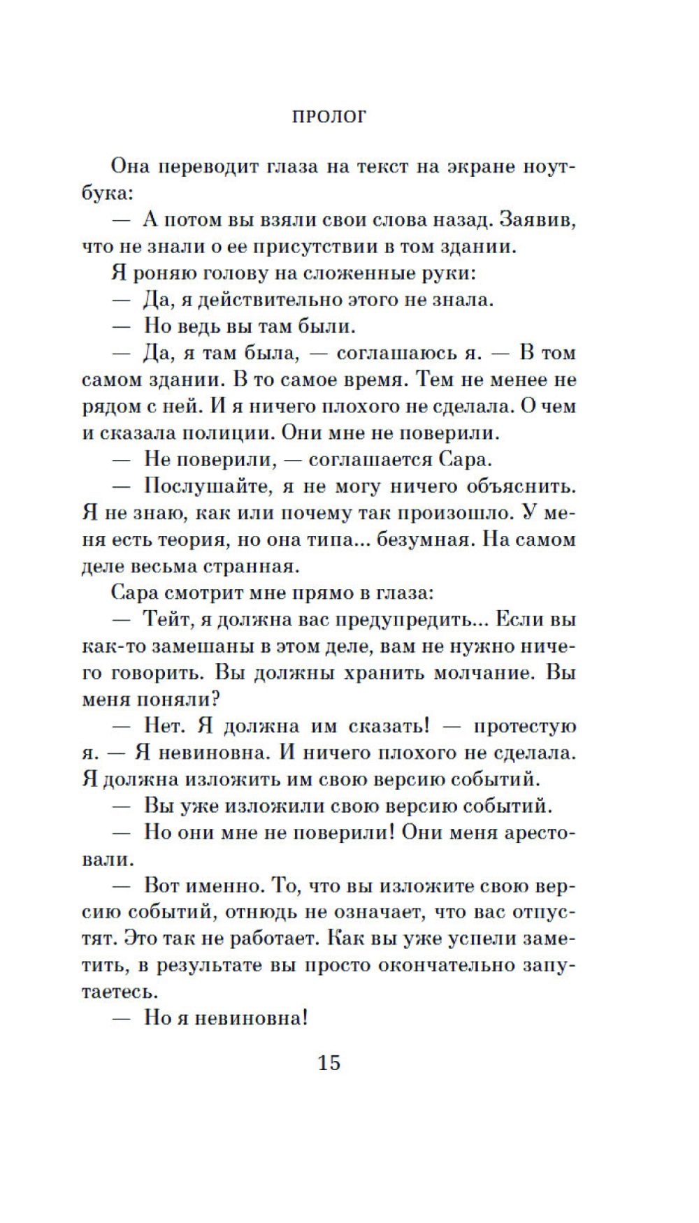 Женщина разбилась насмерть, упав с террасы двадцать пятого этажа лондонского банка. Вы арестованы за ее убийство. Разъясняете полиции, что познакомились с жертвой накануне вечером на корпоративной вечеринке. Она угрожала спрыгнуть с крыши, но вы ее отговорили. Вы не имеете никакого отношения к этой трагедии. Вас явно подставляют. Так почему же полиция продолжает выискивать слабые места в вашей истории? Даже адвокат, похоже, вам не верит. Всем уже ясно, что вы чего-то недоговариваете. Но кого вы пытаетесь защитить? Чьи секреты вы храните? И почему?| Издательство | Азбука |
