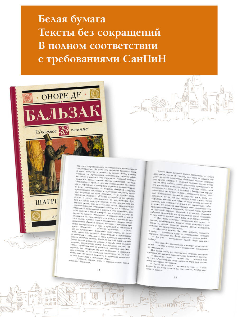 Оноре де Бальзак (1779-1850) - классик французской литературы, критик и драматург, основоположник европейского реализма. Роман "Шагреневая кожа" (1830) Бальзак назвал началом своего творческого пути: он принес писателю первое признание французской публики. "Шагреневая кожа" - история нищего честолюбца Рафаэля Валентена, жизнь которого в одночасье изменилась после приобретения волшебного талисмана в лавке старого антиквара. "Шагреневая кожа" - это "формула нашего теперешнего века, нашей жизни, нашего эгоизма" - говорил о своем романе Оноре де Бальзак. Исполнит ли все желания героя романа старая шагреневая кожа и что потребуется взамен?!| Издательство | ИЗДАТЕЛЬСТВО "АСТ" |