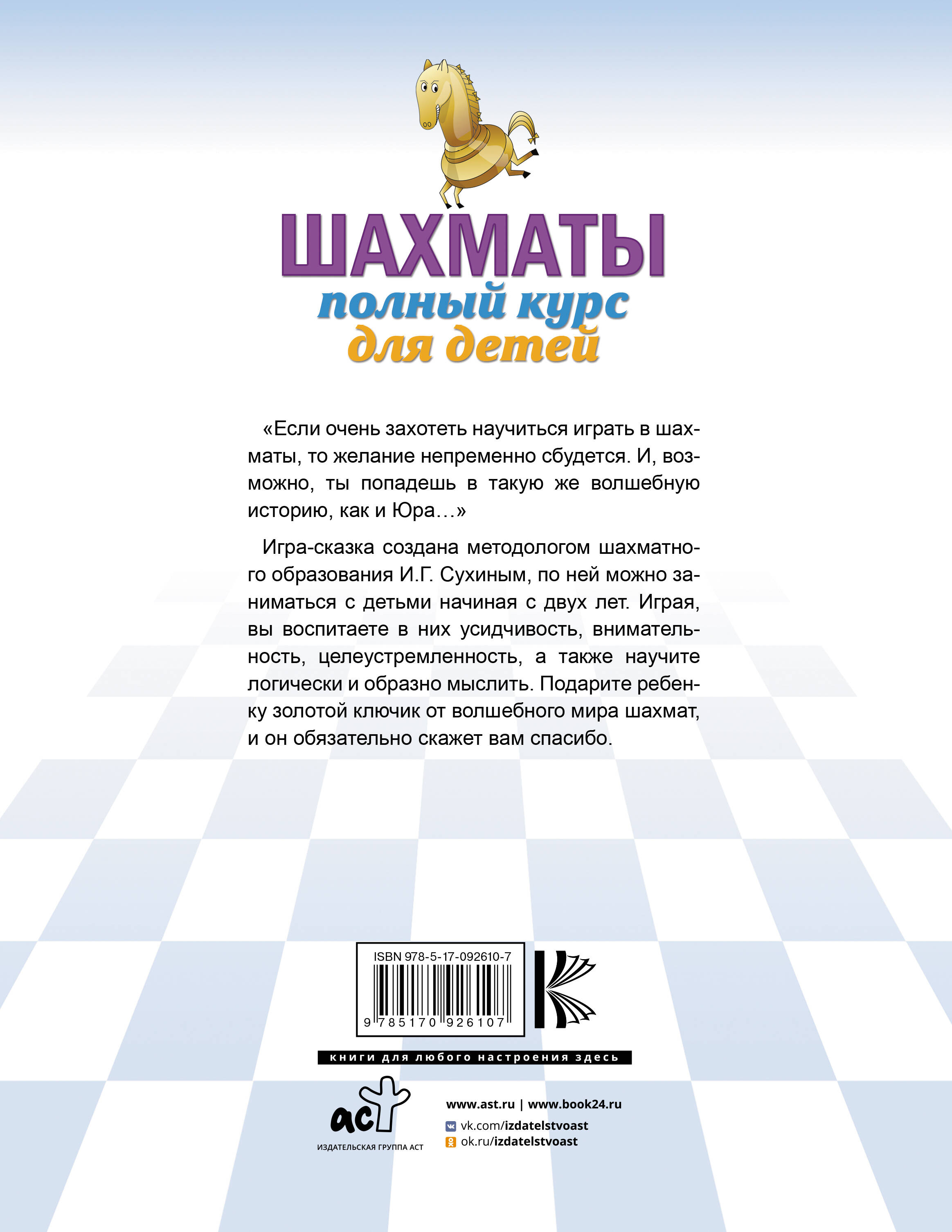 "Если очень захотеть научиться играть в шахматы, то желание непременно сбудется. И, возможно, ты попадешь в такую же волшебную историю, как и Юра…" Игра-сказка создана методологом шахматного образования И.Г. Сухиным, по ней можно заниматься с детьми начиная с двух лет. Играя, вы воспитаете в них усидчивость, внимательность, целеустремленность, а также научите логически и образно мыслить. Подарите ребенку золотой ключик от волшебного мира шахмат, и он обязательно скажет вам спасибо.| Издательство | ИЗДАТЕЛЬСТВО "АСТ" |