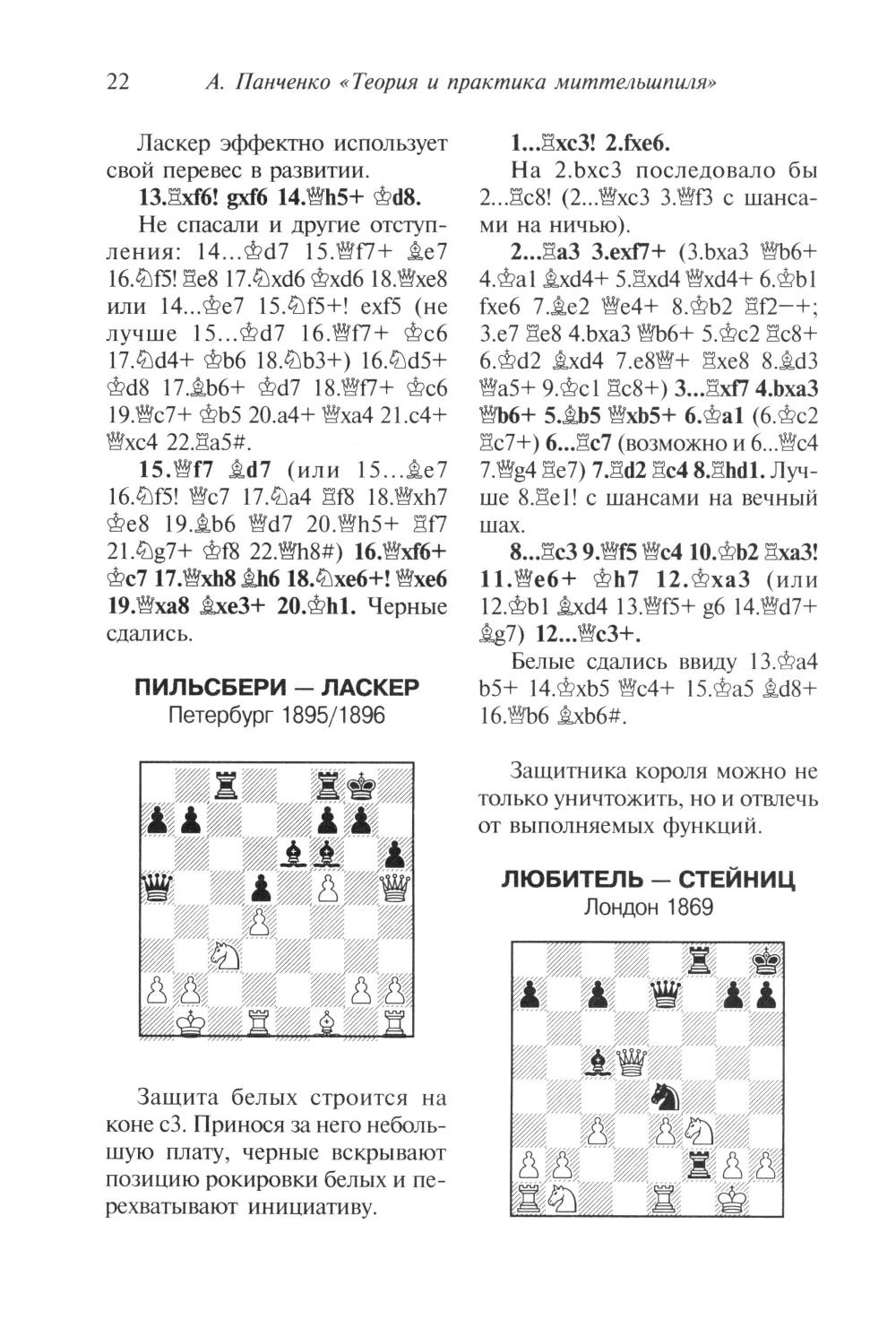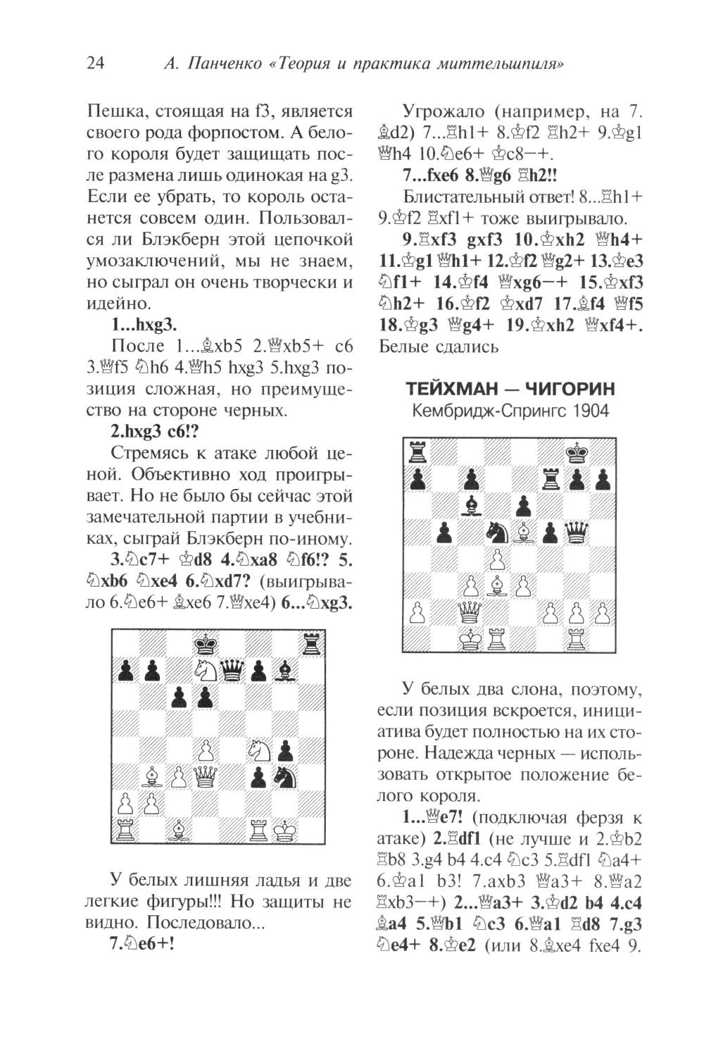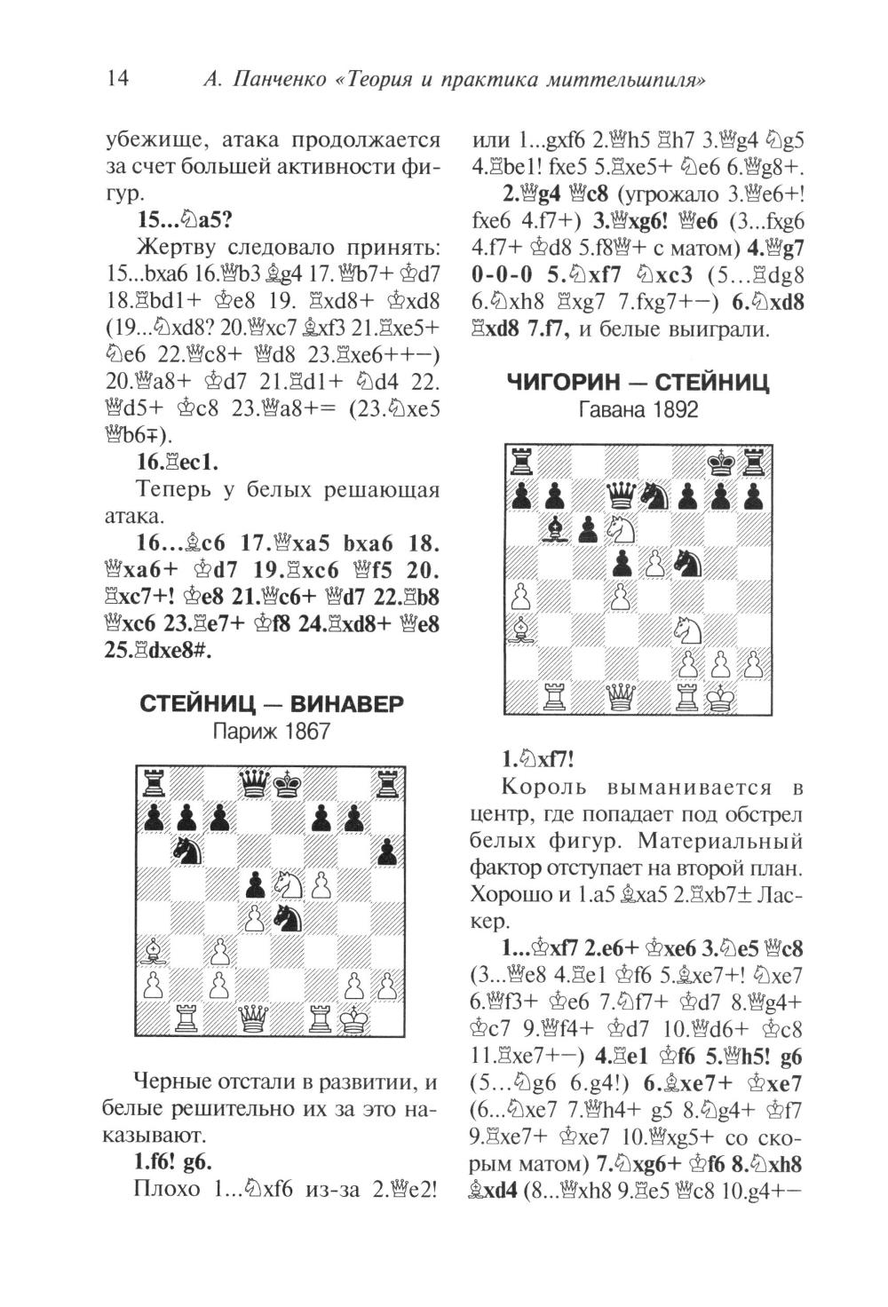 Учебники выдающегося тренера гроссмейстера Александра Панченко основаны на материалах лекций, которые он читал на занятиях возглавляемой им всероссийской школы, воспитавшей десятки шахматистов экстра-класса. В теоретических разделах затрагивается круг важных и сложных, все еще недостаточно изученных тем, а комплекс упражнений максимально приближен к условиям турнирной борьбы и позволяет изучающим усовершенствовать навыки, необходимые для достижения успеха в современных шахматах. При работе над вторым изданием «Теории и практики миттельшпиля» один из лучших воспитанников школы Панченко, гроссмейстер Артем Тимофеев внес необходимые уточнения и дополнения, а также подготовил написанную учителем новую главу об атаке.| Издательство | Русский шахматный дом |