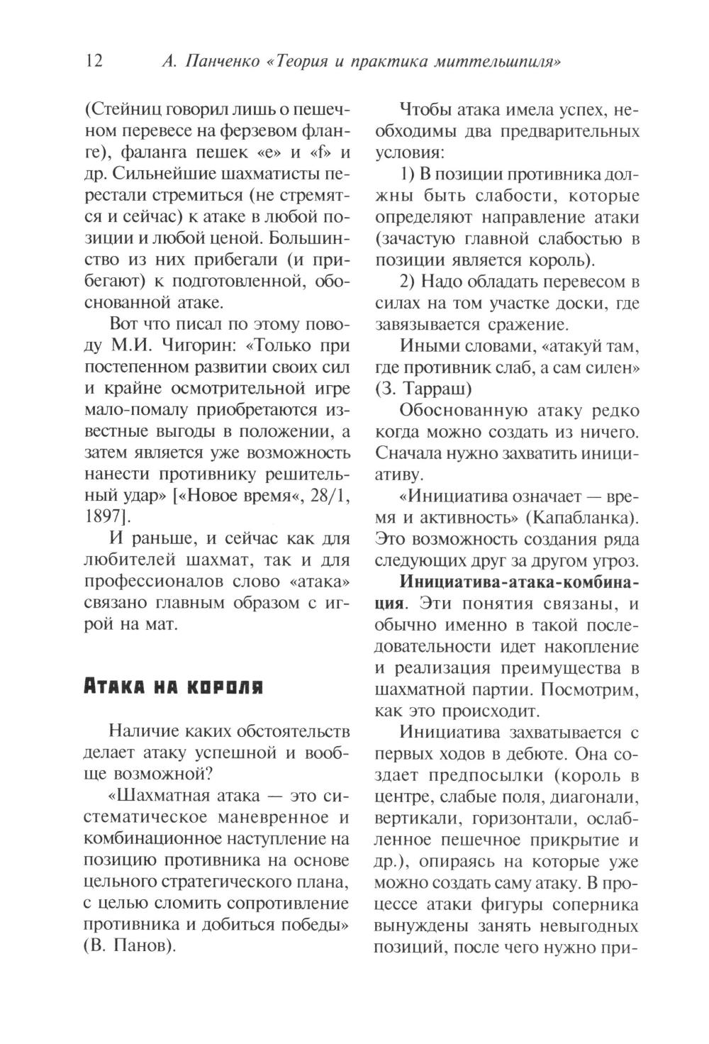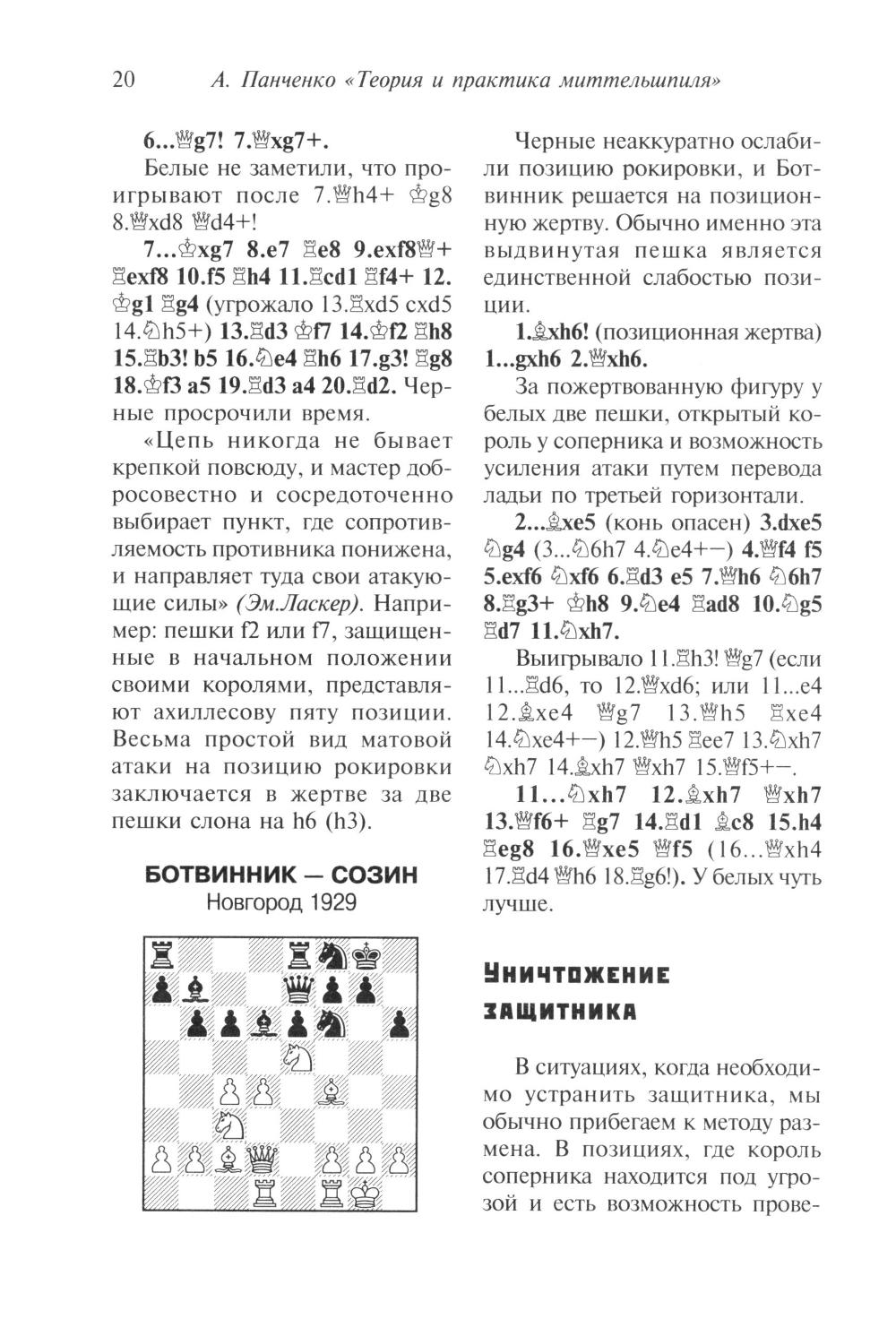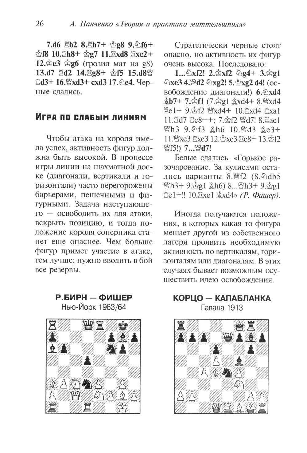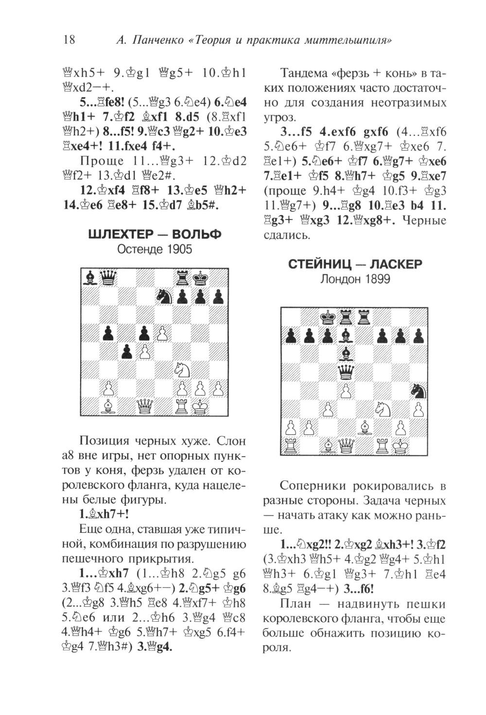 Учебники выдающегося тренера гроссмейстера Александра Панченко основаны на материалах лекций, которые он читал на занятиях возглавляемой им всероссийской школы, воспитавшей десятки шахматистов экстра-класса. В теоретических разделах затрагивается круг важных и сложных, все еще недостаточно изученных тем, а комплекс упражнений максимально приближен к условиям турнирной борьбы и позволяет изучающим усовершенствовать навыки, необходимые для достижения успеха в современных шахматах. При работе над вторым изданием «Теории и практики миттельшпиля» один из лучших воспитанников школы Панченко, гроссмейстер Артем Тимофеев внес необходимые уточнения и дополнения, а также подготовил написанную учителем новую главу об атаке.| Издательство | Русский шахматный дом |