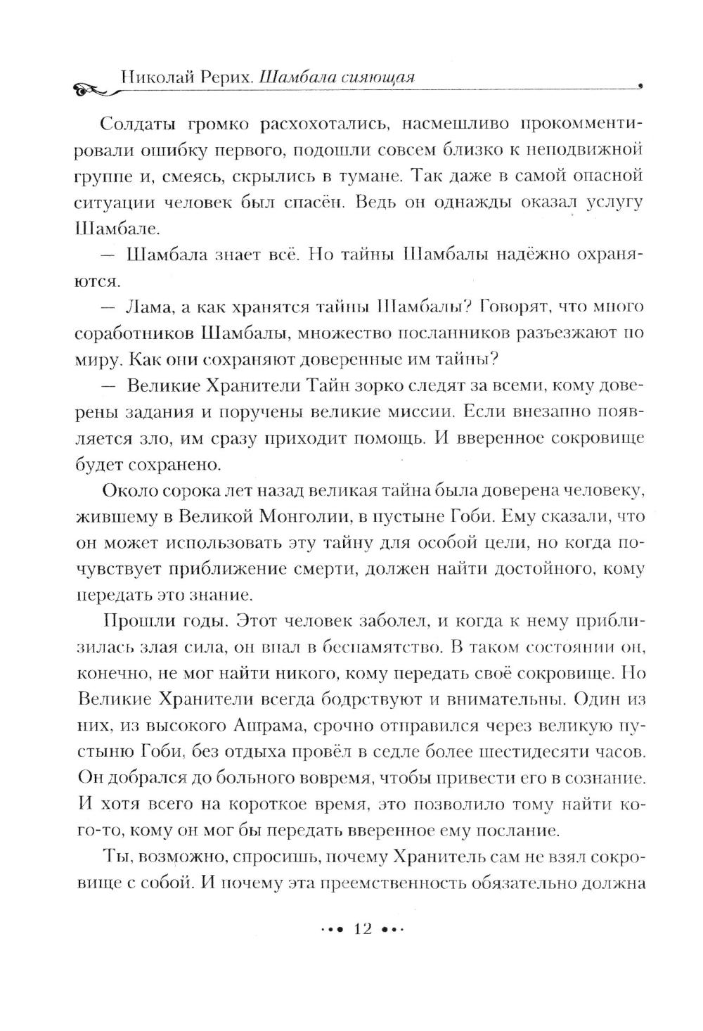 Это произведение представляет собой свод ключевых работ Николая Константиновича Рериха, посвящённых одной из центральных мифологем его философско-художественного мира - Шамбале. Шамбала рассматривается как символ духовной иерархии, этический идеал и метаисторическая реальность. Синтетический подход Рериха объединяет художественное видение, научный интерес к археологии и этнографии Центральной Азии, а также теософскую доктрину о духовной эволюции человечества. Особый акцент делается на концепции «Новой Эпохи» (Эры Майтрейи). Книга адресована специалистам в области философии, культурологии, истории искусства и религиоведения, а также всем исследователям интеллектуальной истории XX века, русского космизма и межкультурного диалога Востока и Запада.| Издательство | Амрита-Русь |