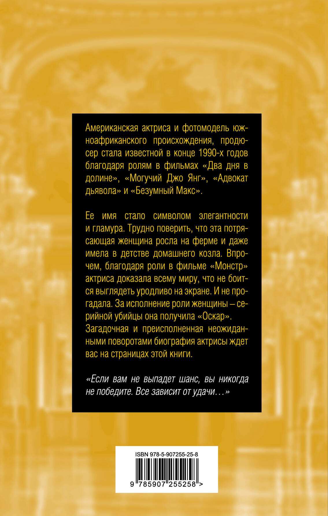 Американская актриса и фотомодель южноафриканского происхождения, продюсер стала известной в конце 1990-х годов благодаря ролям в фильмах «Два дня в долине», «Могучий Джо Янг», «Адвокат дьявола» и «Безумный Макс». Ее имя стало символом элегантности и гламура. Трудно поверить, что эта потрясающая женщина росла на ферме и даже имела в детстве домашнего козла. Впрочем, благодаря роли в фильме «Монстр» актриса доказала всему миру, что не боится выглядеть уродливо на экране. И не прогадала. За исполнение роли женщины-серийной убийцы она получила «Оскар». Загадочная и преисполненная неожиданными поворотами биография актрисы ждет вас на страницах этой книги. «Если вам не выпадет шанс, вы никогда не победите. Все зависит от удачи…»| Издательство | Родина Издательство ООО |