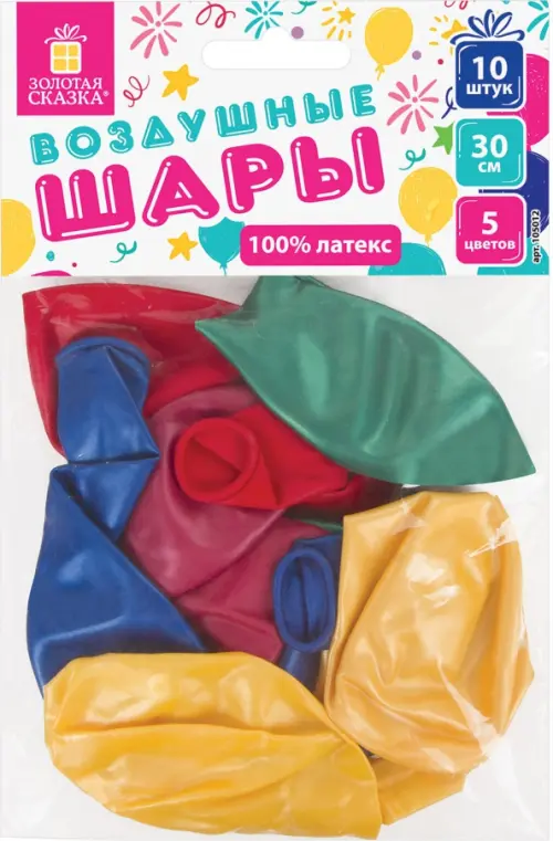 Шары воздушные "Золотая сказка", 12" (30 см), 10 штук, металлик, ассорти 5 цветов