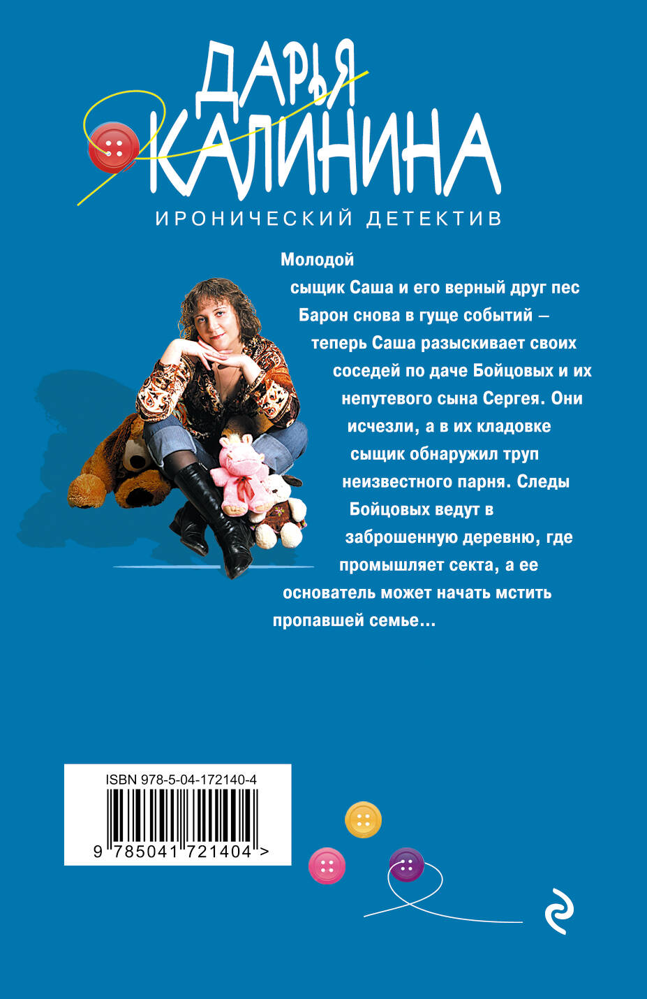 Молодой сыщик Саша и его верный друг пес Барон снова в гуще событий - теперь Саша разыскивает своих соседей по даче, Бойцовых, и их непутевого сына Сергея. Они исчезли, а в их кладовке сыщик обнаружил труп неизвестного парня. Следы Бойцовых ведут в заброшенную деревню, где промышляет секта, а ее основатель может начать мстить пропавшей семье… Удастся ли Саше разгадать загадочное убийство и найти самый настоящий клад - об этом в новом ироническом детективе Дарьи Калининой.| Издательство | ООО "Издательство "Эксмо" |
