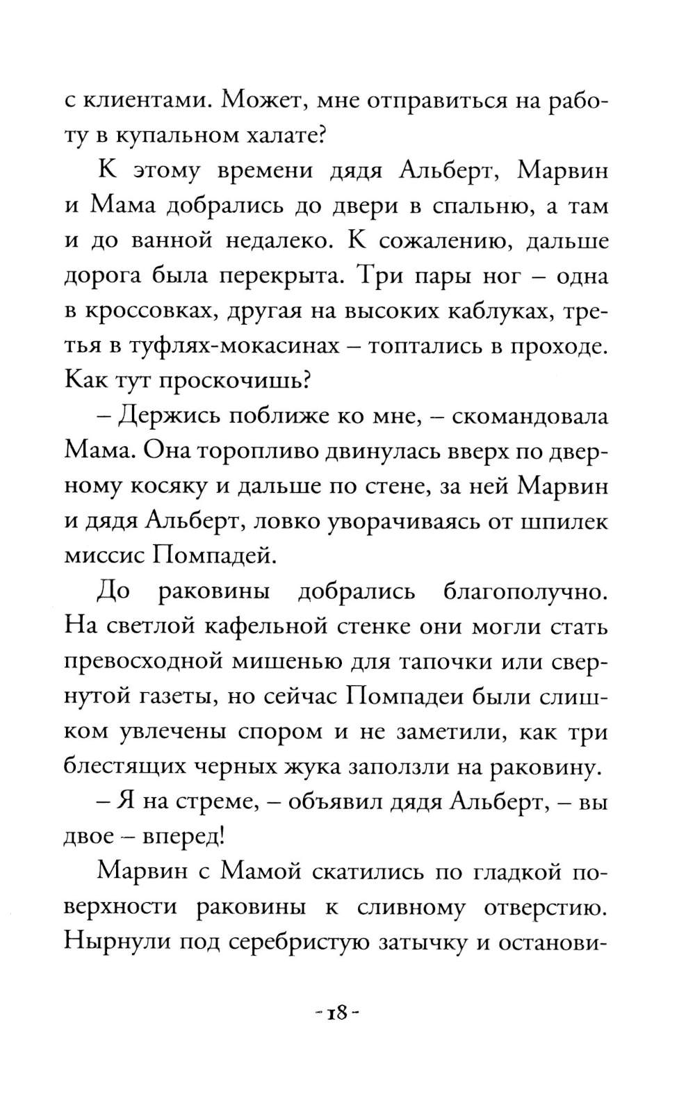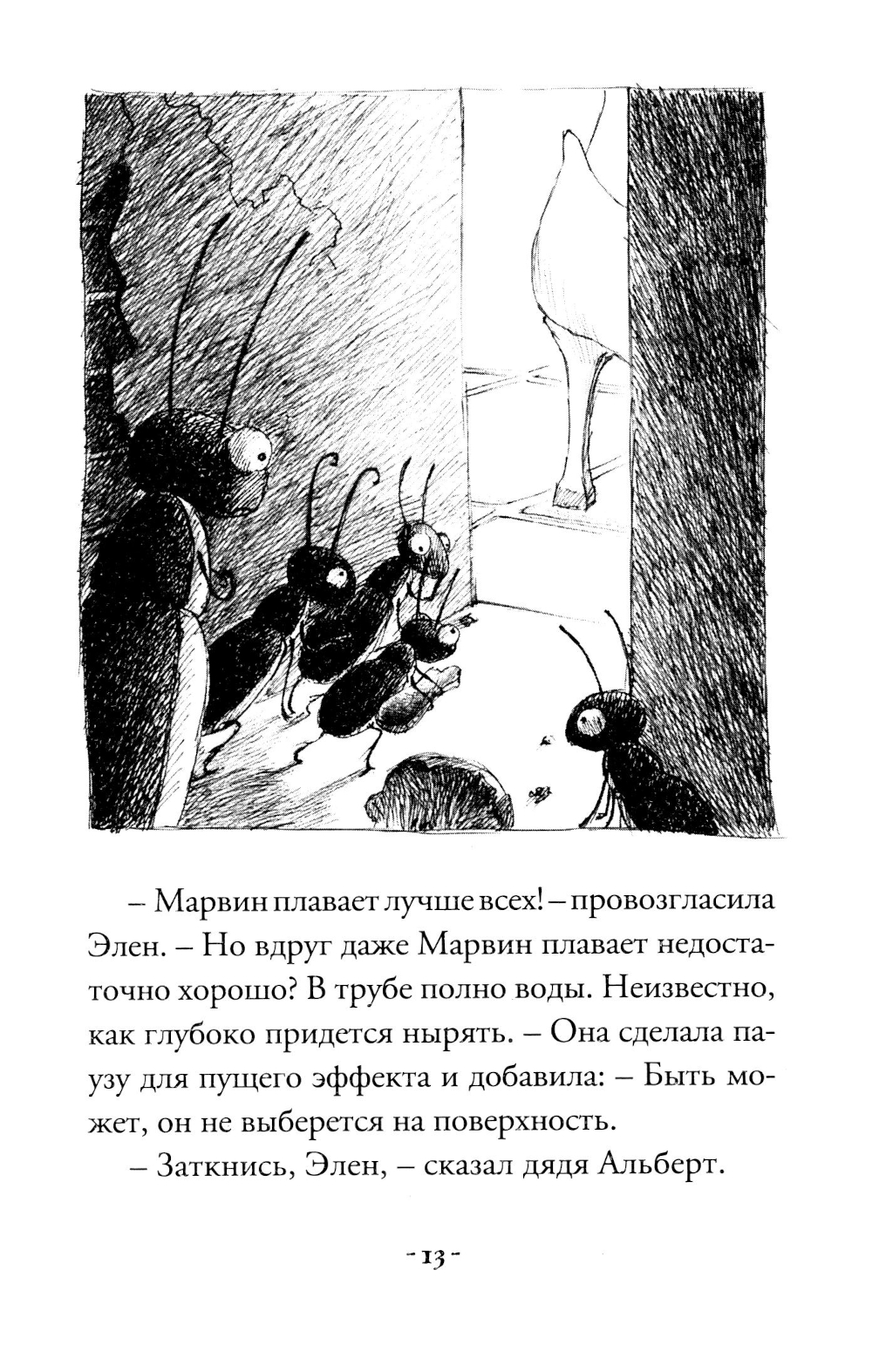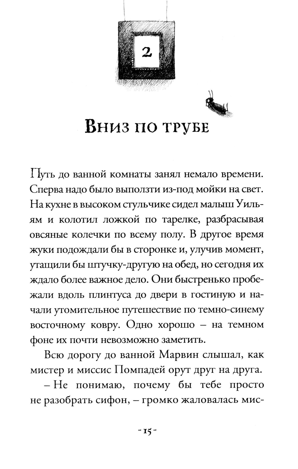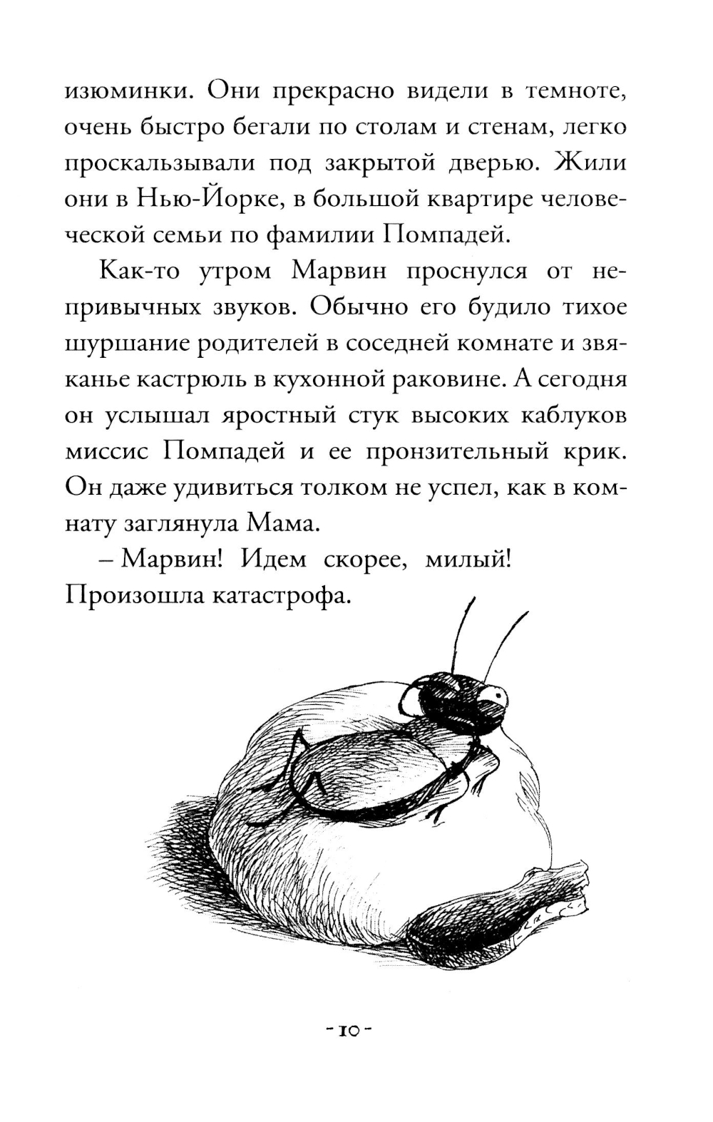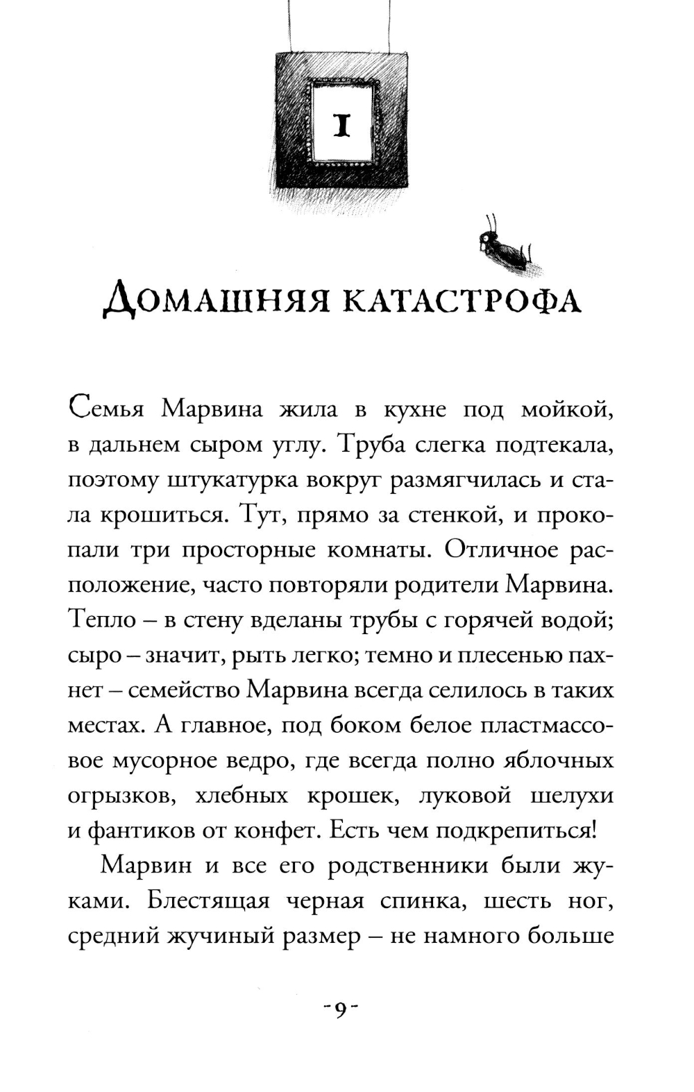 Марвин - самый обыкновенный жук, его семья поселилась под кухонной мойкой в квартире Помпадеев в Нью-Йорке. Джеймс Помпадей - самый обыкновенный одиннадцатилетний мальчик, которому подарили на день рождения набор для рисования: чернила и перо. И Марвин сделал Джеймсу подарок - нарисовал изящнейшую миниатюру. А вся слава достала Джеймсу. Так, совершенно неожиданно для самих себя друзья (разве может кто-то запретить одиннадцатилетнему мальчику дружить с жуком?!) оказались участниками и главными героями увлекательнейшего арт-детектива, в котором перемешалось все: подделка шедевра великого мастера, хитроумные планы грабителей и полные настоящих опасностей приключения. Удастся ли Джеймсу спасти Метрополитен от ограбления и вернуть утраченные рисунки Альбрехта Дюрера? Ясно лишь одно - без помощи Марвина ему не обойтись.| Издательство | Розовый жираф |