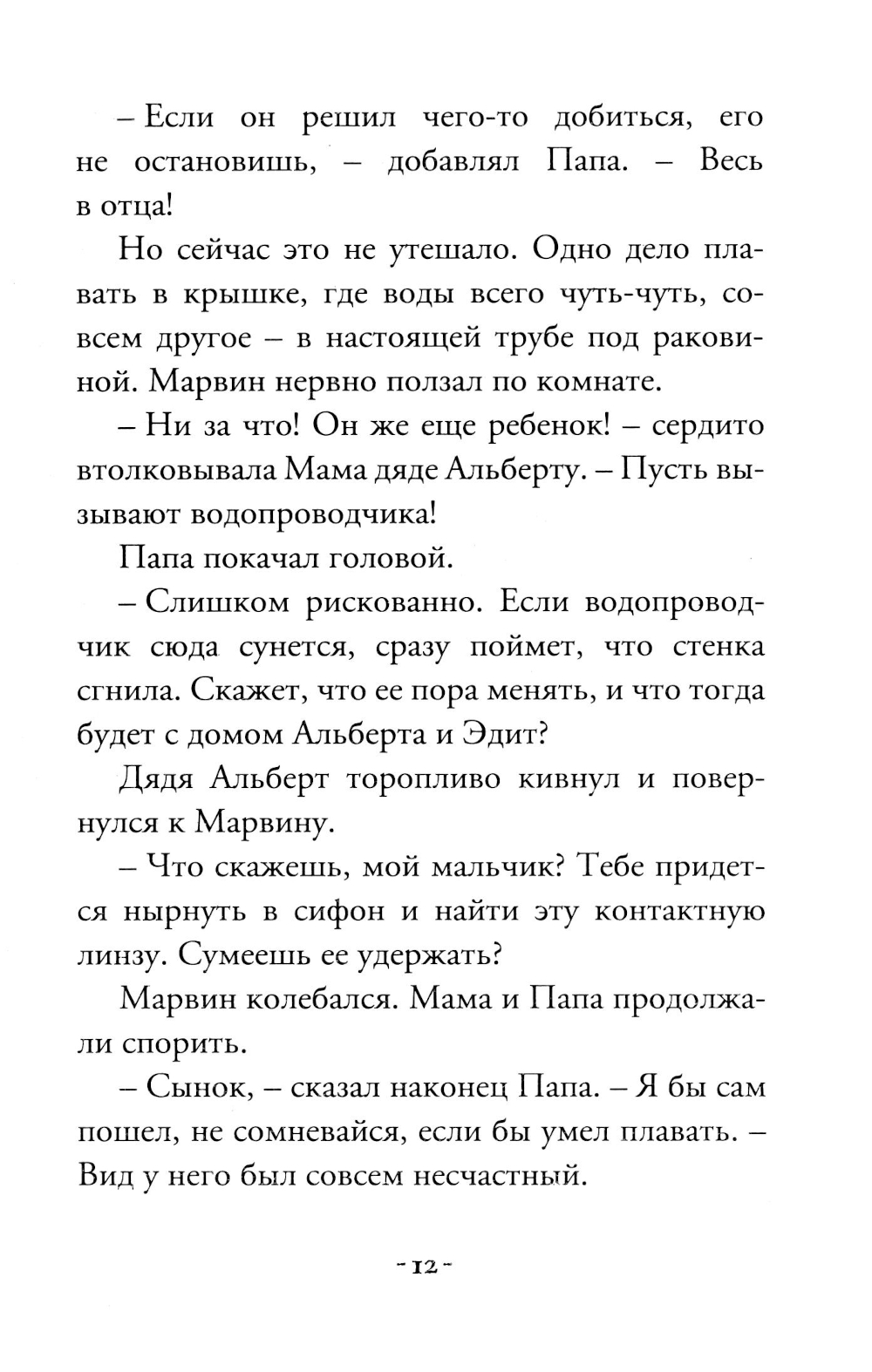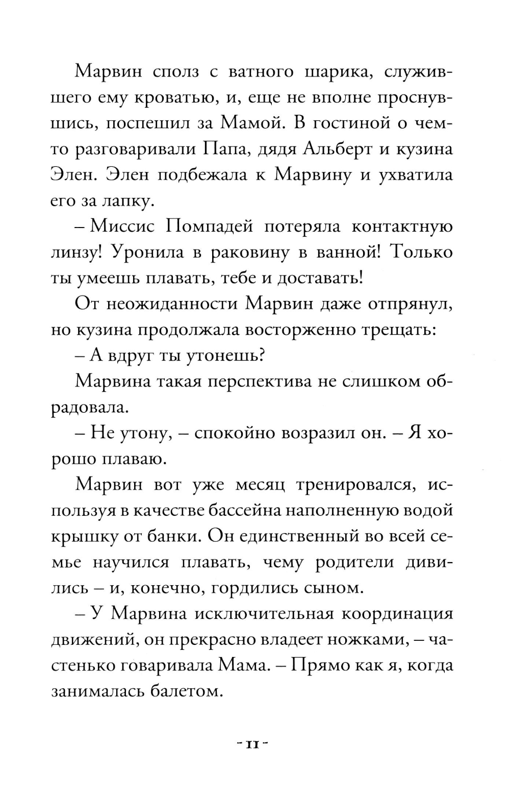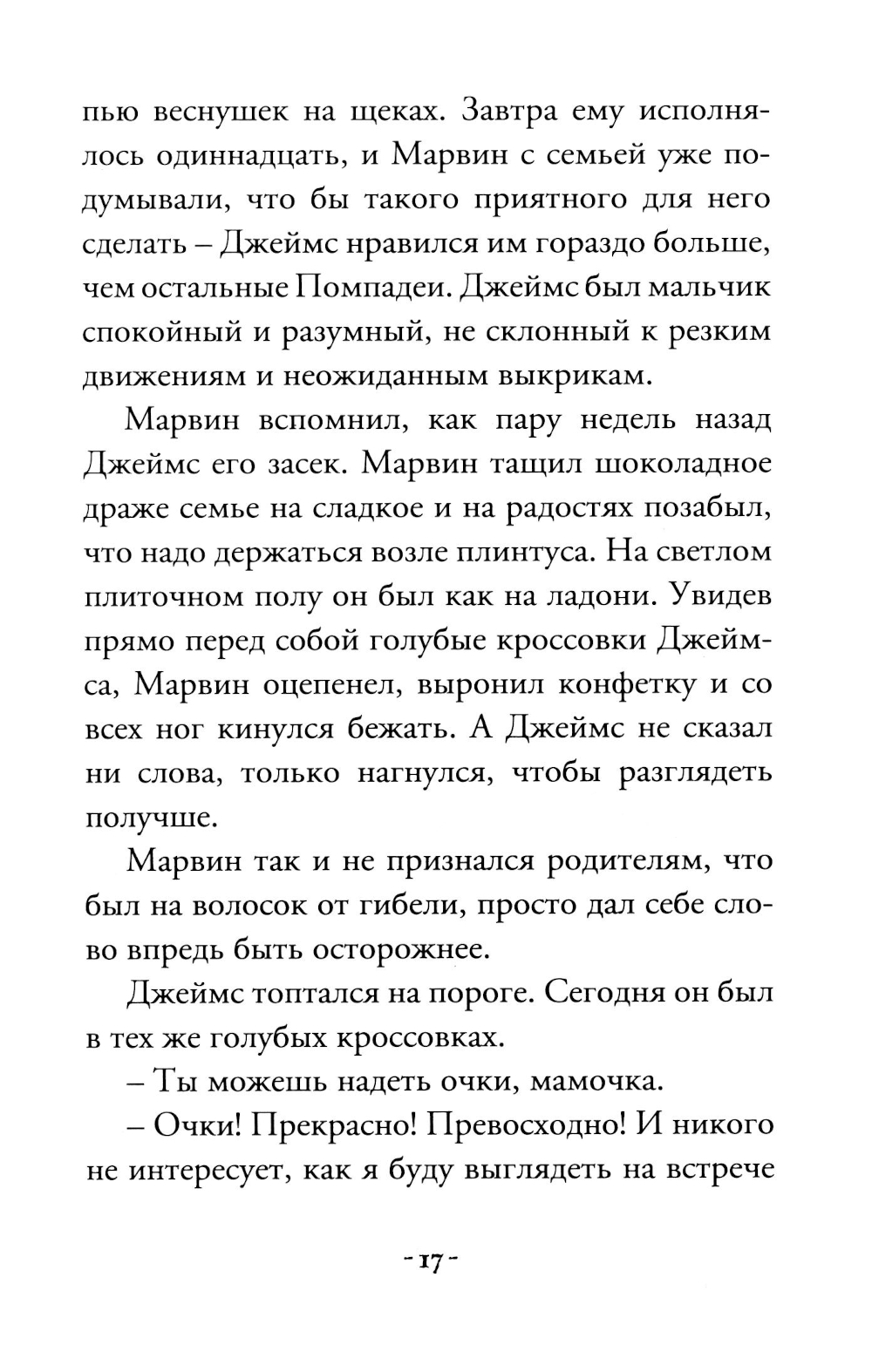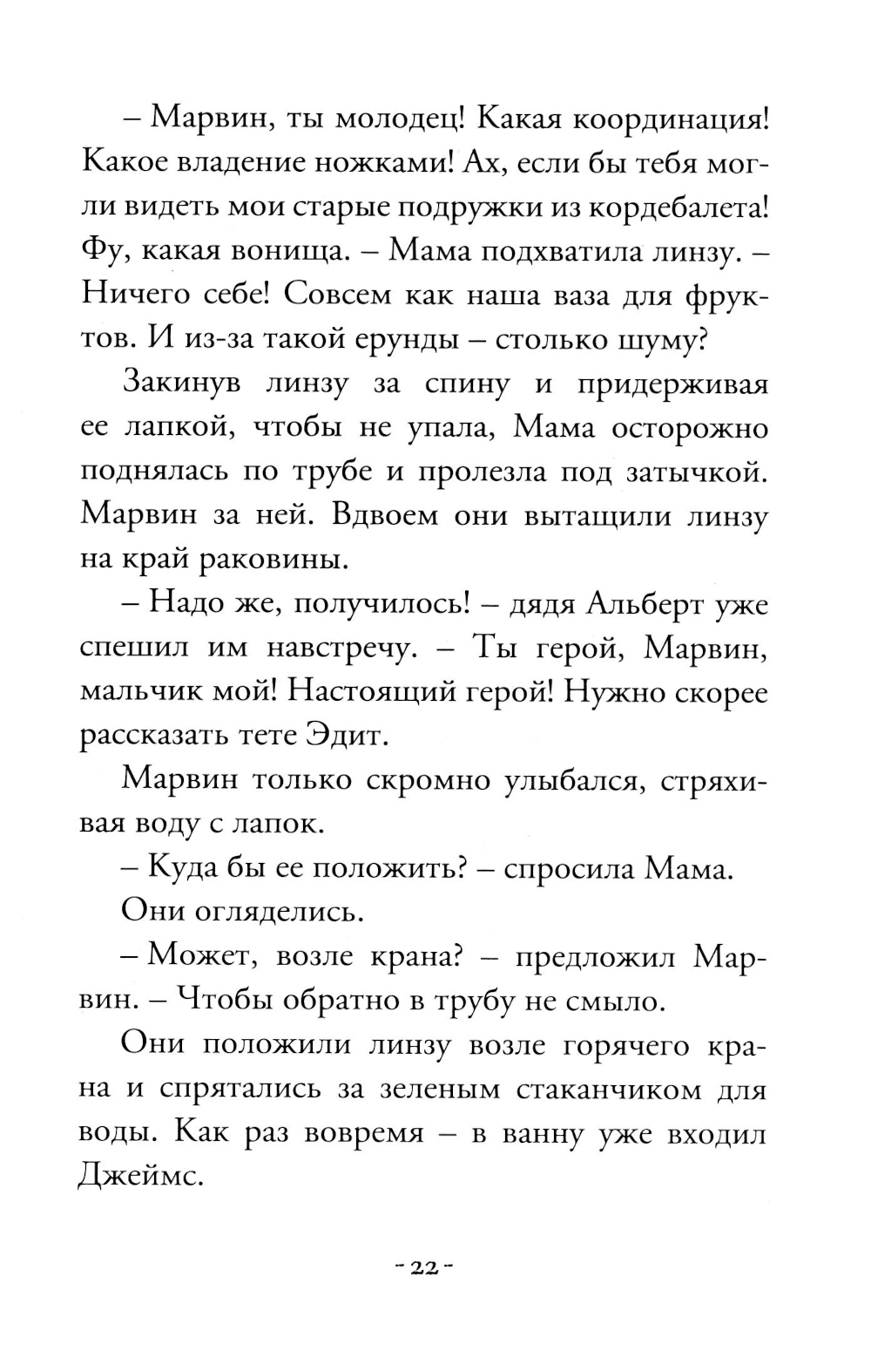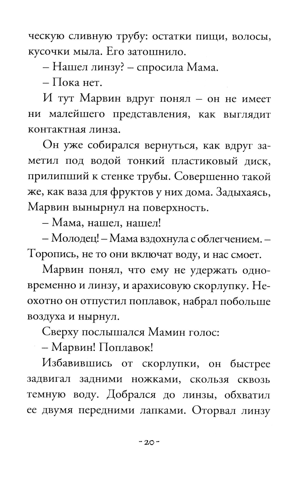 Марвин - самый обыкновенный жук, его семья поселилась под кухонной мойкой в квартире Помпадеев в Нью-Йорке. Джеймс Помпадей - самый обыкновенный одиннадцатилетний мальчик, которому подарили на день рождения набор для рисования: чернила и перо. И Марвин сделал Джеймсу подарок - нарисовал изящнейшую миниатюру. А вся слава достала Джеймсу. Так, совершенно неожиданно для самих себя друзья (разве может кто-то запретить одиннадцатилетнему мальчику дружить с жуком?!) оказались участниками и главными героями увлекательнейшего арт-детектива, в котором перемешалось все: подделка шедевра великого мастера, хитроумные планы грабителей и полные настоящих опасностей приключения. Удастся ли Джеймсу спасти Метрополитен от ограбления и вернуть утраченные рисунки Альбрехта Дюрера? Ясно лишь одно - без помощи Марвина ему не обойтись.| Издательство | Розовый жираф |