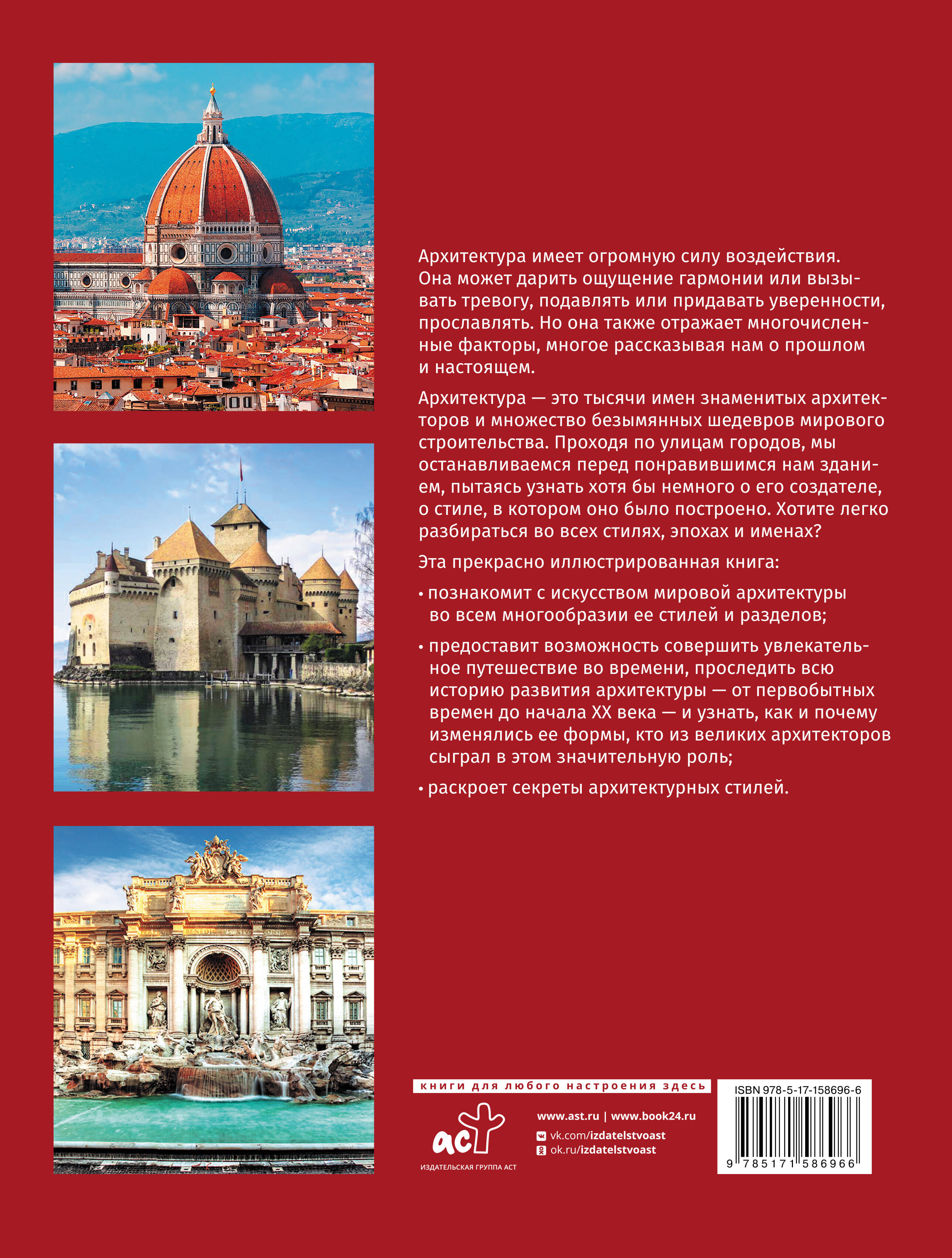 Архитектура имеет огромную силу воздействия. Она может дарить ощущение гармонии или вызывать тревогу, подавлять или придавать уверенности, прославлять. Но она также отражает многочисленные факторы, многое рассказывая нам о прошлом и настоящем. Это прекрасно иллюстрированное издание познакомит с искусством архитектуры во всем многообразии ее основных стилей, областей и разделов. Оно будет особенно интересно тем, кто хотел бы проследить всю историю развития архитектуры - от первобытных времен до начала XX, - понять, как и почему изменились ее формы, кто из великих архитекторов сыграл в этом значительную роль. В книге также раскрываются секреты возведения самых знаменитых архитектурных сооружений, что дает возможность по-новому взглянуть на известные всему миру шедевры.