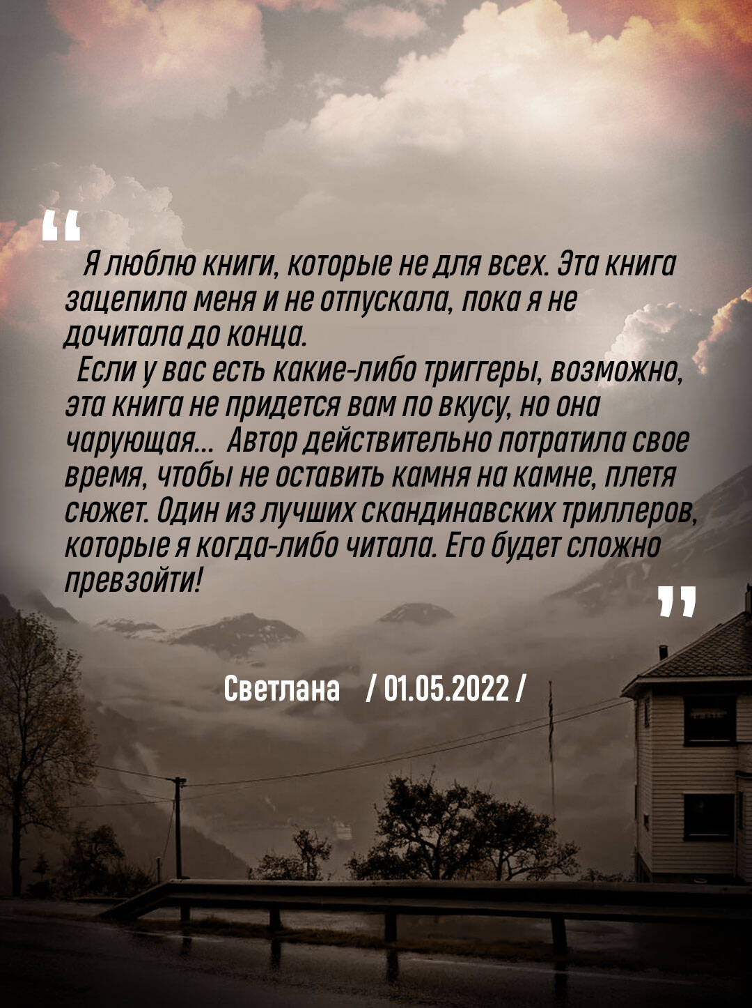 НАЦИОНАЛЬНЫЙ БЕСТСЕЛЛЕР НОРВЕГИИ. ПРАВА НА ИЗДАНИЕ ПРОДАНЫ В 12 СТРАН. А вам когда-нибудь приходилось сбрасывать кожу? ____________________________________________________________ «Оригинальный, острый, нежный и одновременно пугающий, этот роман амбициозен и гипнотически читабелен». - Крис Уитакер, автор мирового бестселлера «Мы начинаем в конце» _____________________________________________________________ Это мой рассказ. Моя история. Она закручена и переплетена, как кольца гигантской змеи… Я - питон по имени Неро. Когда-то меня взяла к себе Теплая женщина по имени Лив. Она полюбила меня. Она кормила меня живыми существами. Живя у нее, я начал понимать язык людей и привык к теплой крови. И все это время я ждал настоящей добычи. И мечтал лишь об одном - проглотить Теплую женщину, вобрать ее в себя… Маленький норвежский городок Кристиансунн. Мариам Линд отправляется за покупками со своей одиннадцатилетней дочерью. После внезапной ссоры она уходит, думая, что девочка сама доберется до дома… но та бесследно исчезает. И теперь Мариам не может внятно объяснить полиции, зачем в тот день она, вместо того чтобы просто вернуться домой, поехала на машине за много километров от места, где пропала ее дочь… Это рассказ о том, как люди могут быть змеями. И, главное - как они могут ими стать… ___________________________________________________________________ «Высокий прицел, стопроцентное попадание в цель. Благодаря убедительной, более или менее свободной от клише прозой и изысканному чувству композиции Силье Ульстайн удалось написать действительно выдающийся триллер». - Aftenposten «Лучший норвежский дебютный триллер за годы». - Adresseavisa «Невыносимо волнующе… глубоко оригинально… Я предсказываю, что Силье Ульстайн ждет впереди великая писательская карьера». - Dagbladet «Это темный, захватывающий роман; в нем нет ничего, что могло бы прийти вам в голову. Короче, очень хороший триллер». - Aftonbladet